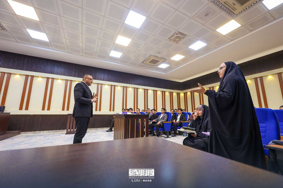 في إطار تعزيز التعاون العلمي بين محكمة استئناف كربلاء وكلية القانون في جامعة وارث الأنبياء (عليه السلام)، ألقى القاضي الأستاذ راسم الياسري، نائب رئيس محكمة استئناف كربلاء، محاضرة لطلبة المرحلة الثالثة ضمن مادة "المحكمة الافتراضية".