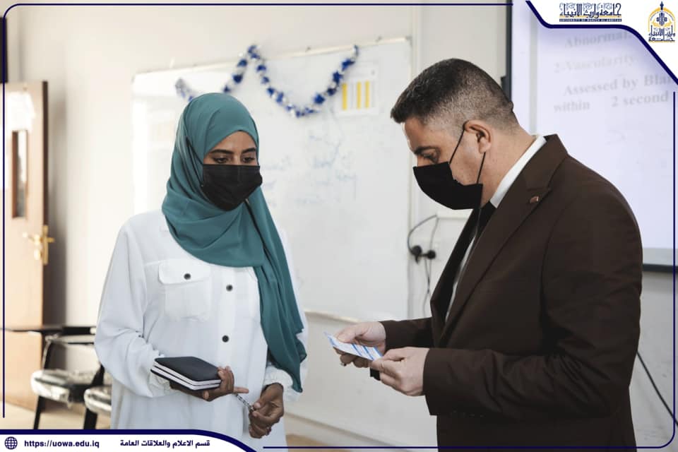 حرصاً على الاهتمام بدروس التطبيق العملي ولما له من اثر في تخريج ممرضين ماهرين تفقد السيد عميد كلية التمريض في جامعة وارث الانبياء(عليه السلام) الاستاذ المساعد الدكتور مرتضى غانم عداي دروس التطبيق العملي لطلبة كلية التمريض في مختبرات الكلية مع التأكيد على الالتزام بالاجراءات الوقائية وإظهار كارات اللقاح من قبل الطلبة.