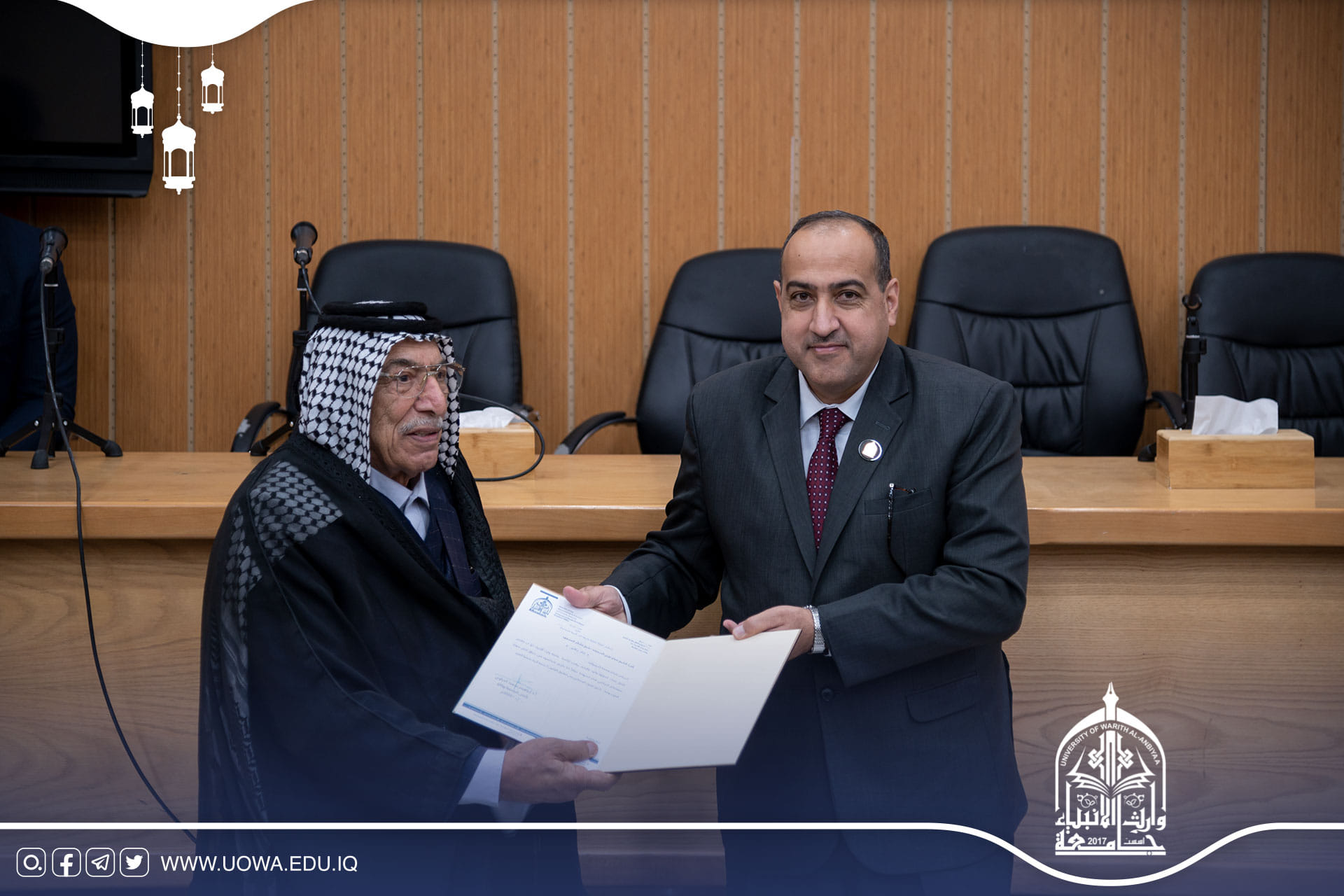 برعاية السيد رئيس الجامعة الاستاذ الدكتور ابراهيم الحياوي، وبإشراف عميد كلية القانون أم.د علي الشريفي وبحضور شخصيات حكومية وعشائرية ووجهاء من محافظة كربلاء المقدسة.