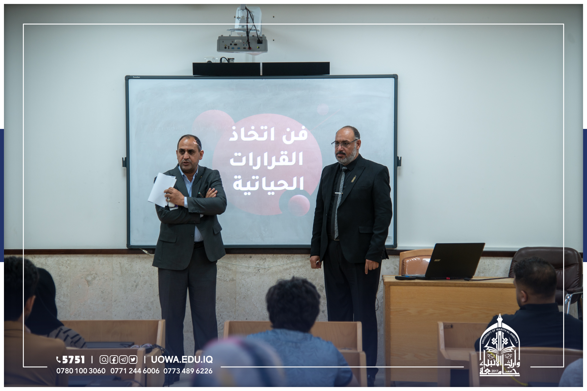 انطلاقة متميزة للبرنامج التدريبي الخاص بصقل مهارات الطلبة والذي يحمل عنوان طلبتنا..قادة المستقبل والمتضمن باقة قيمة من المحاضرات التنموية الثرية كانت مع ورشة فن اتخاذ القرارات الحياتية بقيادة المدرب د.احمد دخل الجباسي وقد تحدث فيها عن مفهوم اتخاذ القرار وانواعه وكذلك اهمية اتخاذ القرارات وخطواته وما تنضوي بين طياته من اساسيات بناء شخصية القائد المبدع.