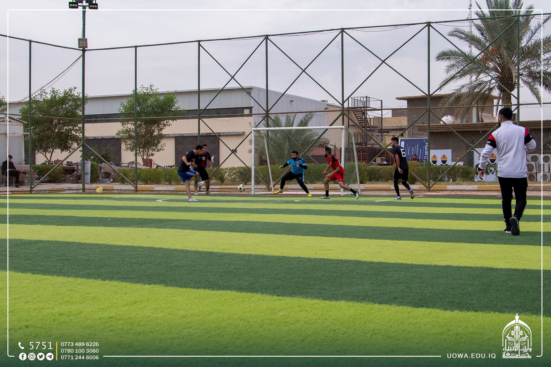 بالصور .... استمرار منافسات بطولة وارث الانبياء لخماسي الكرة بين فرق كليات واقسام الجامعة،التي يقيمها قسم النشاطات الطلابية بالتعاون مع مركز رعاية الشباب بالعتبة الحسينية المقدسة.