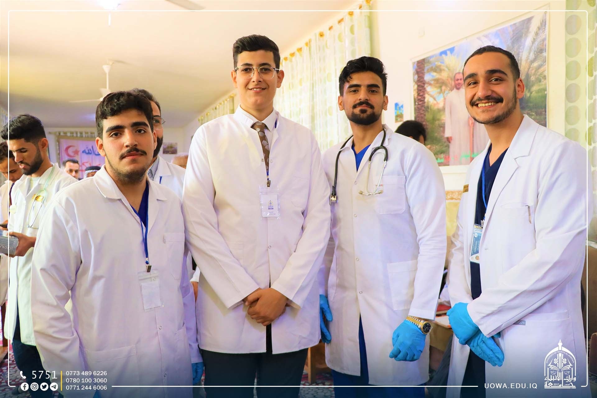 ضمن مبادرة "بركات الانوار المحمدية" التي اطلقتها هيئة الصحة والتعليم الجامعي في العتبة الحسينية المقدسة بمناسبة الولادات الشعبانية المباركة، اقامت كلية الطب بالتعاون مع كلية التمريض في جامعة وارث الانبياء(عليه السلام)، جولة ميدانية للقرى في اطراف محافظة كربلاء المقدسة بإشراف عمادة كلية الطب لتقديم الدعم الطبي لساكني هذه القرى و الاستشارات الطبية لهم.
