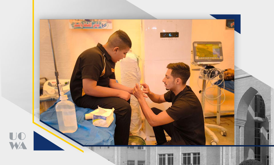 بإشراف عمادة كلية التمريض، شارك طلبة الكلية في تقديم الخدمات التمريضية لزوار أربعينية الإمام الحسين (عليه السلام)، في إطار جهود دعم الخدمات الصحية للزوار. قام الطلبة بتقديم الإسعافات الأولية والمساهمة في تقديم الرعاية الطبية بالتعاون مع الكوادر الطبية والصحية، لضمان توفير أفضل الخدمات للزوار خلال فترة الزيارة.