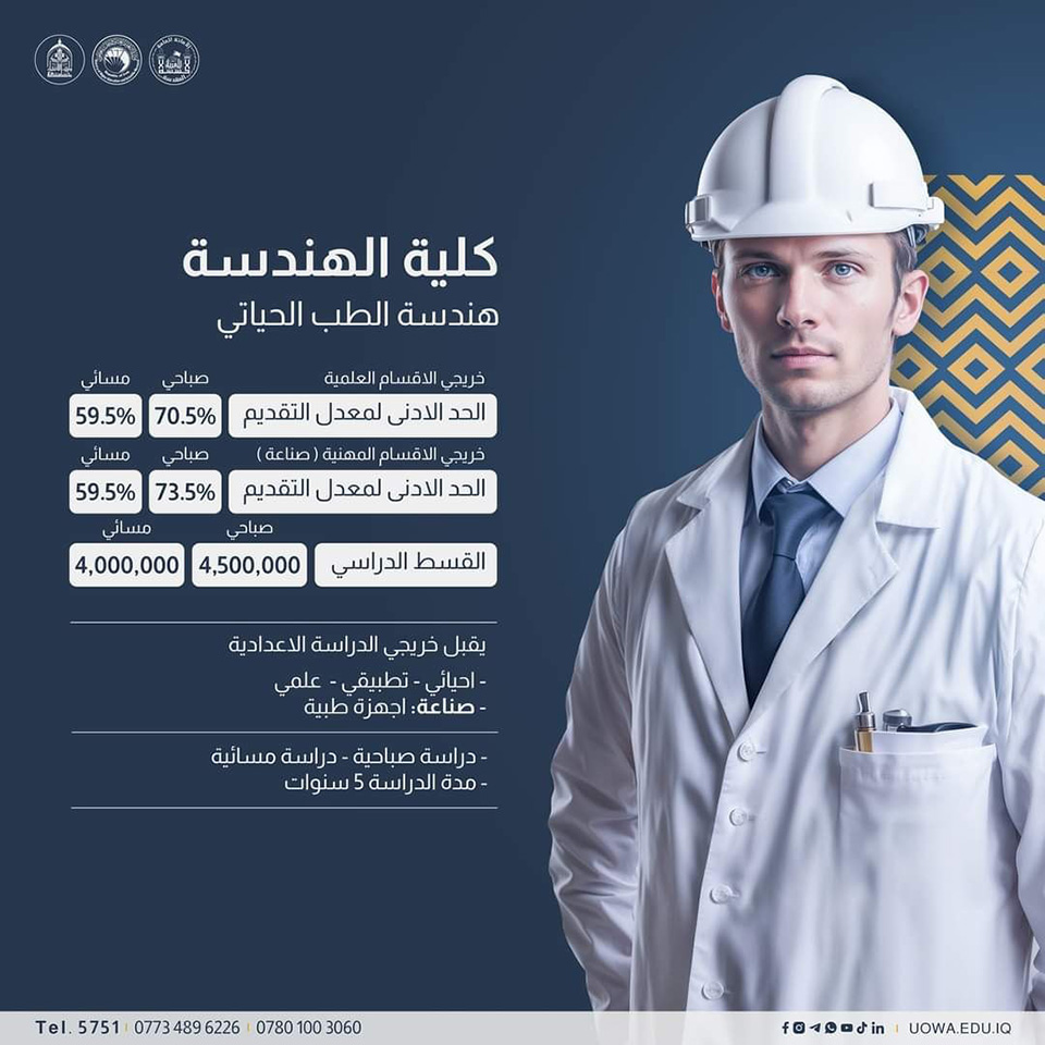اكتشف تخصصات جامعة وارث الانبياء (عليه السلام) في المجالات الطبية، الهندسية، والعلوم الإنسانية.