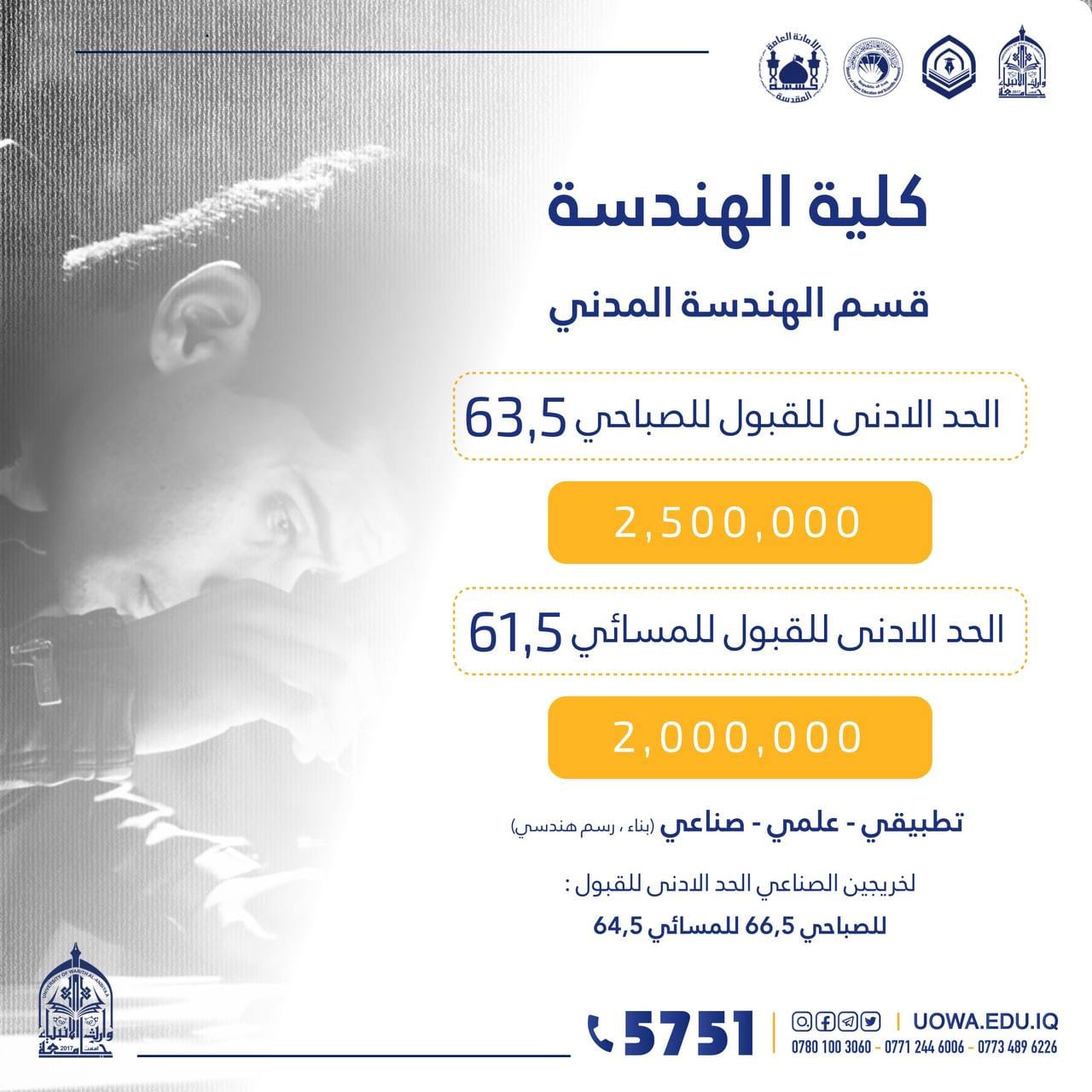 يسر جامعة وارث الانبياء(عليه السلام) أن تعلن للطلبة الاعزاء الراغبين ببدء اولى خطواتهم في طريق النجاح عبر التقديم على كليات واقسام الجامعة ،عن قيمة الاقساط الدراسية للعام الدراسي (2022-2023)