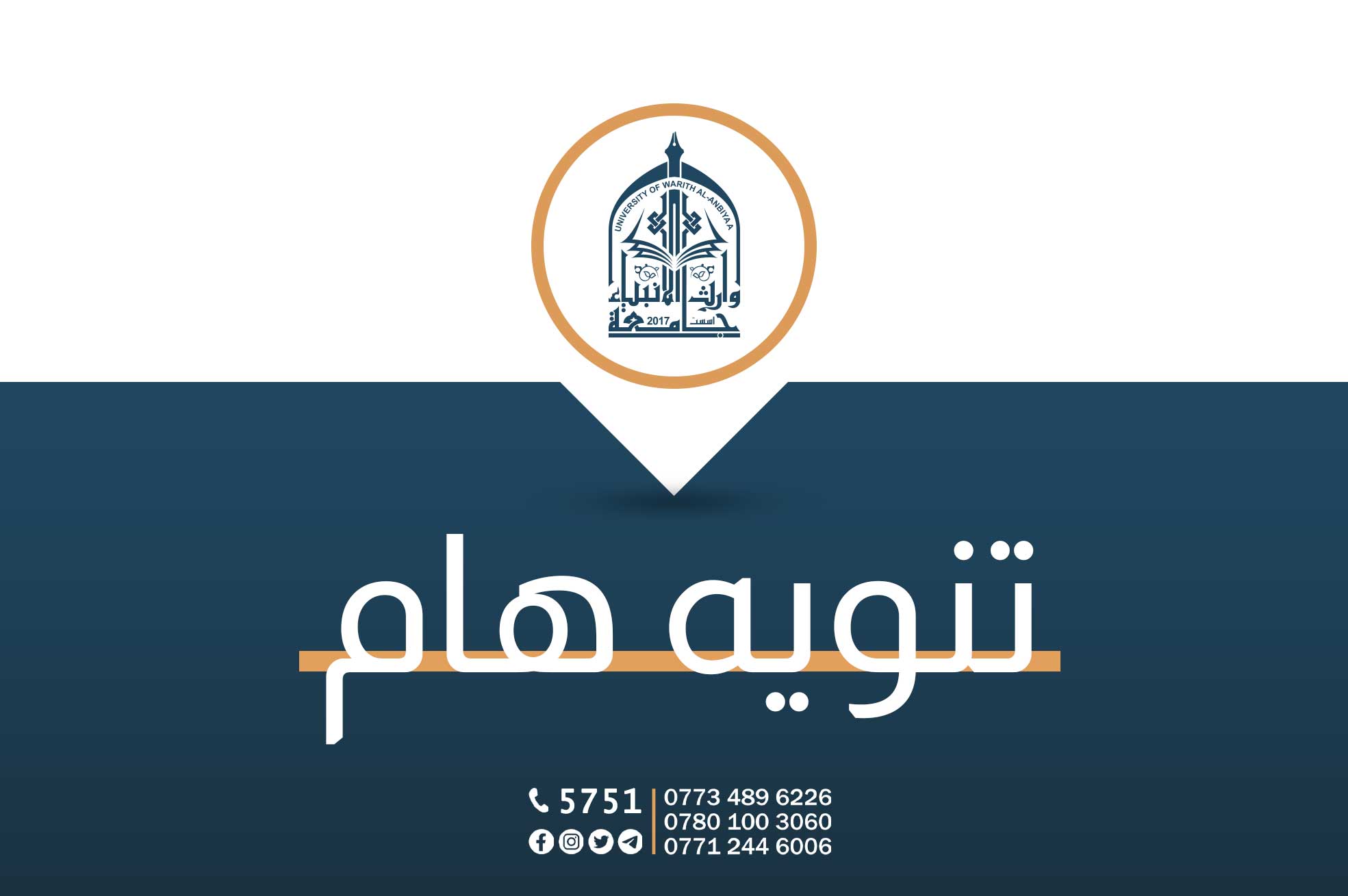 *يكون التسجيل في جامعة وارث الانبياء(عليه السلام) _طريق بغداد_قرب مدينة سيد الاوصياءللزائرين