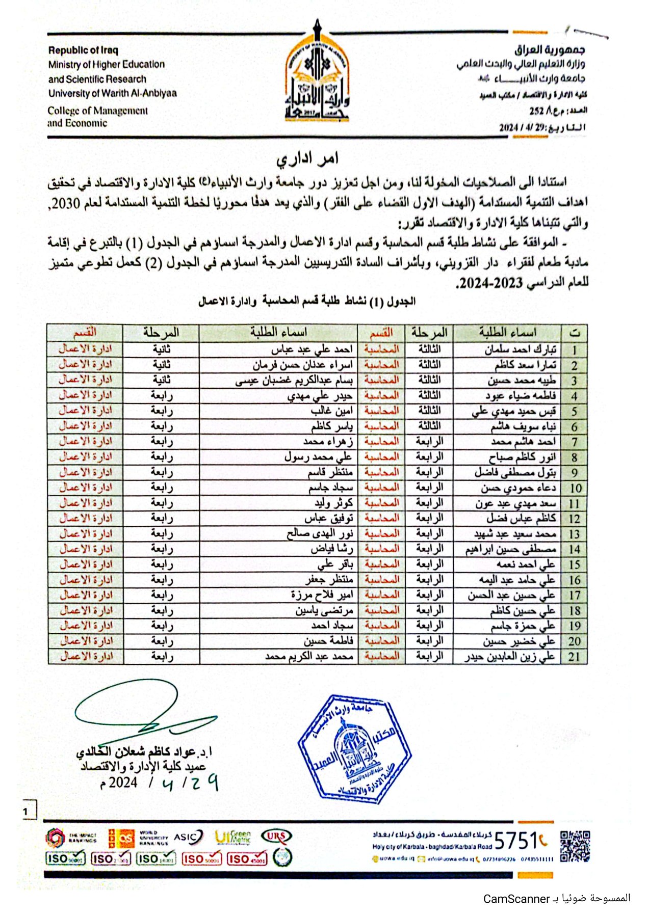 جامعة عراقية معترف بها من قبل وزارة التعليم العالي والبحث العلمي العراقي بموجب الامر الوزاري المرقم ( ت.أ / ك 4727 في سنة 2017)