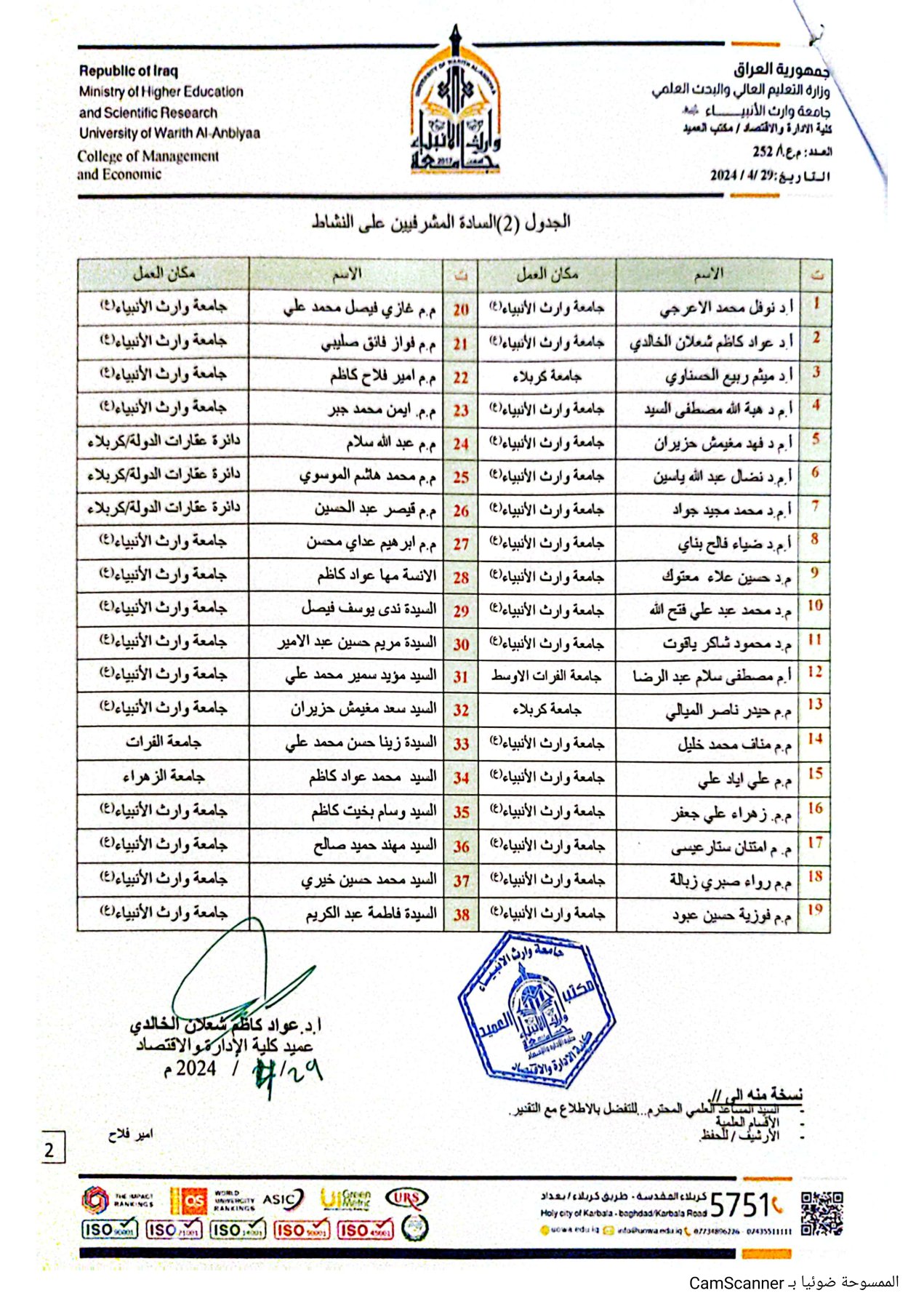 • كلمة العميد