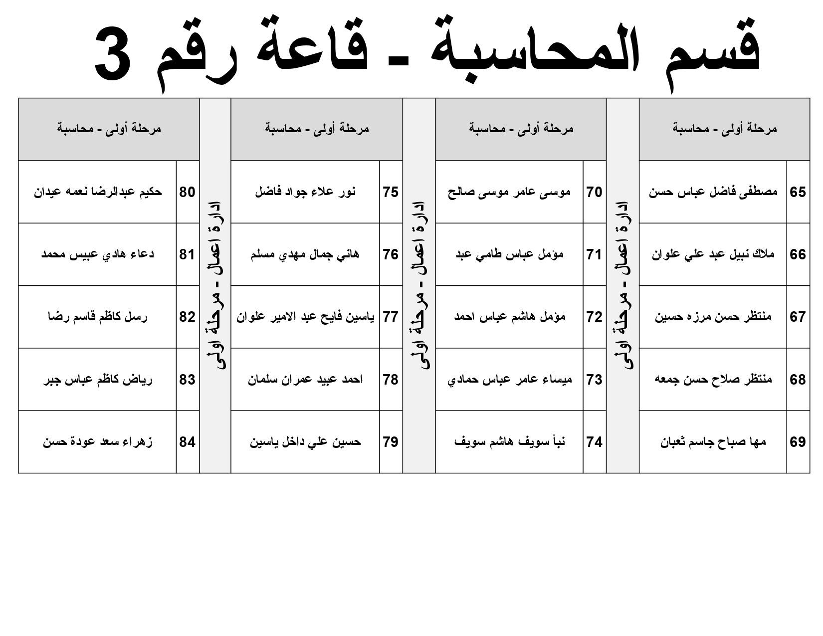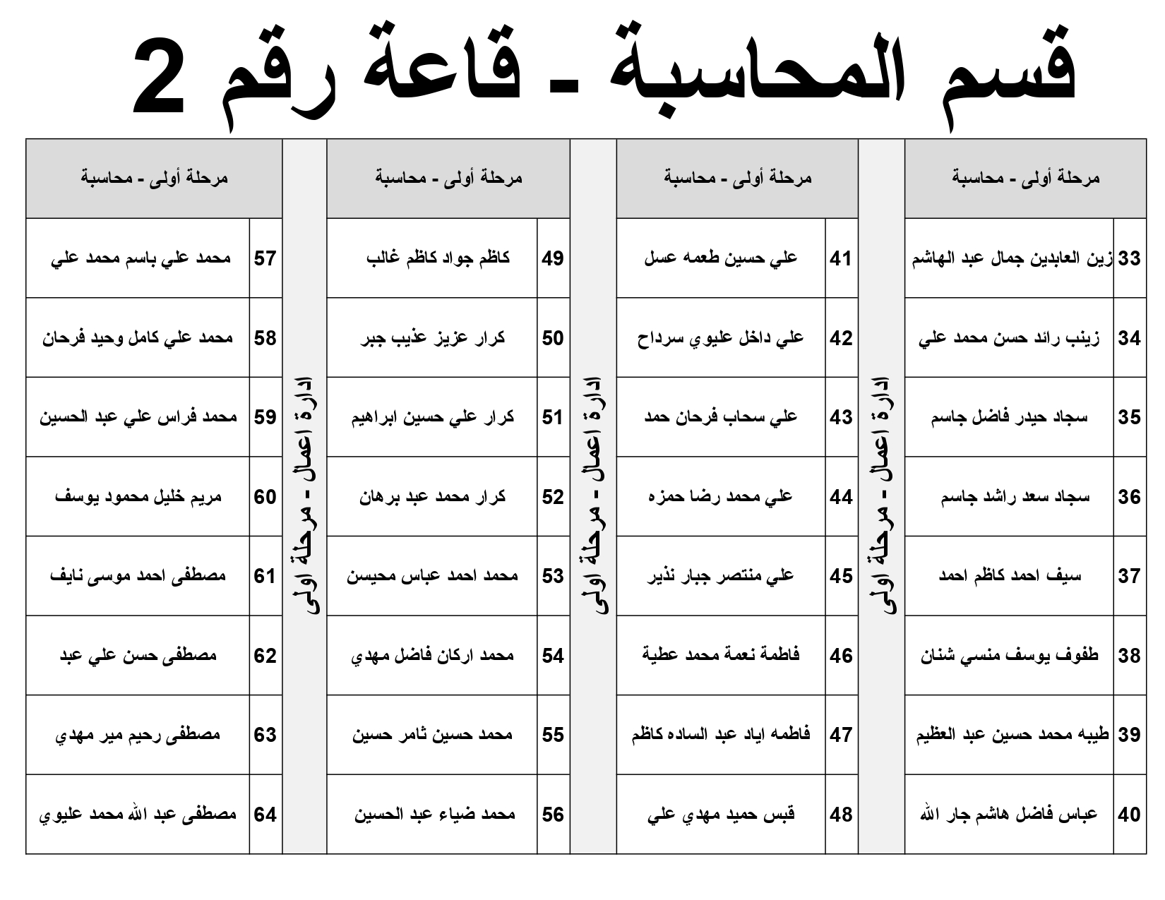 خارطة جلوس طلبة قسم المحاسبة المرحلة الاولى
