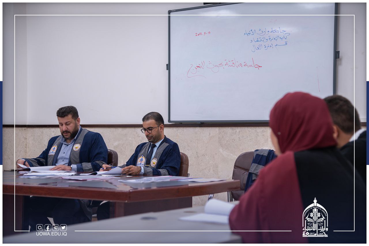 بدا قسم ادارة الاعمال في كلية الادارة والاقتصاد مناقشة بحوث تخرج طلبة المرحلة الرابعة كجزء من المتطلبات لنيل شهادة البكلوريوس في علوم ادارة الاعمال .