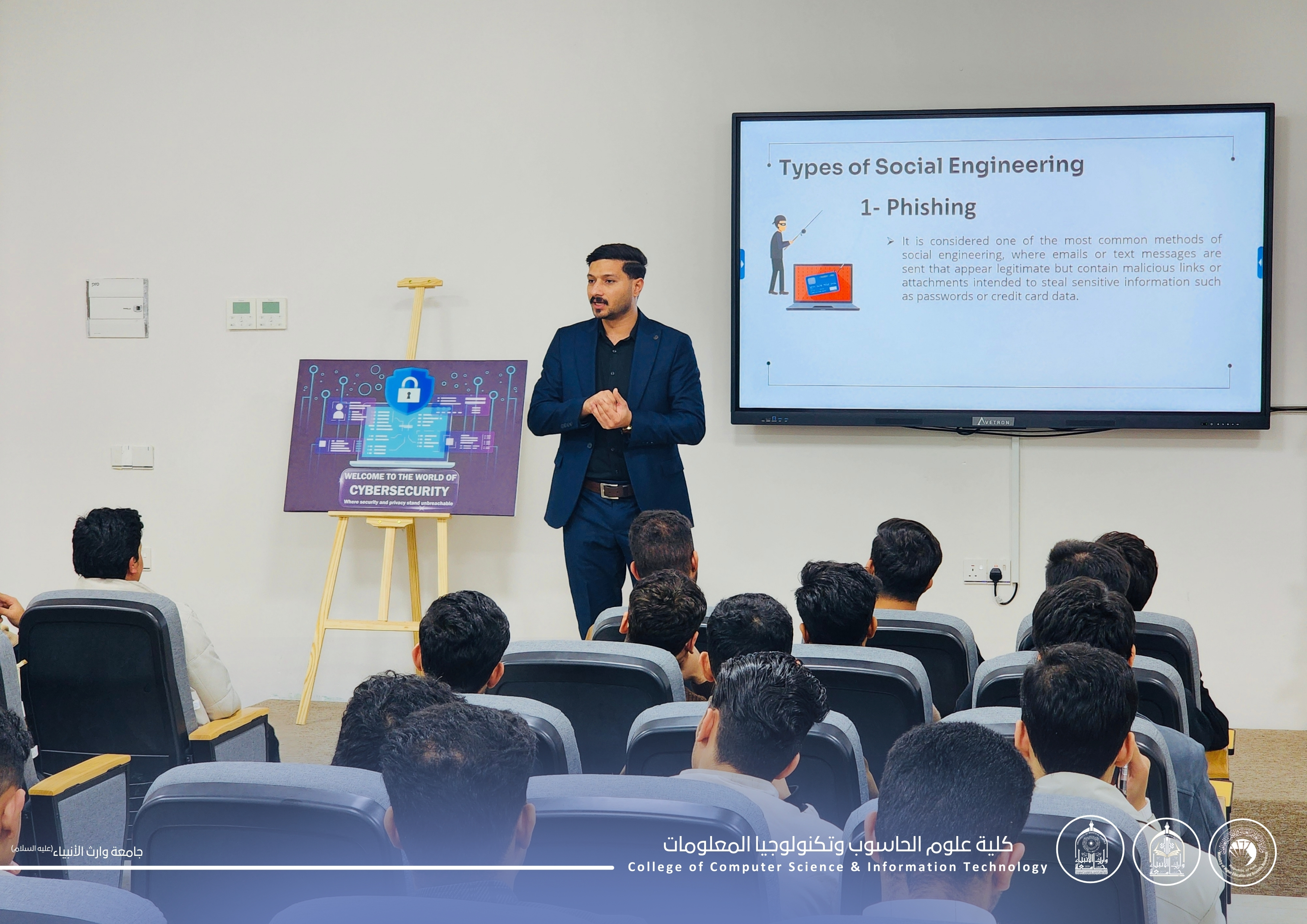 شهدت الكلية تنظيم ورشة توعوية تناولت موضوع Social Engineering، الذي يُعد من أخطر أساليب الاختراق الحديثة لاعتماده على استغلال السلوك البشري بدل الثغرات التقنية.