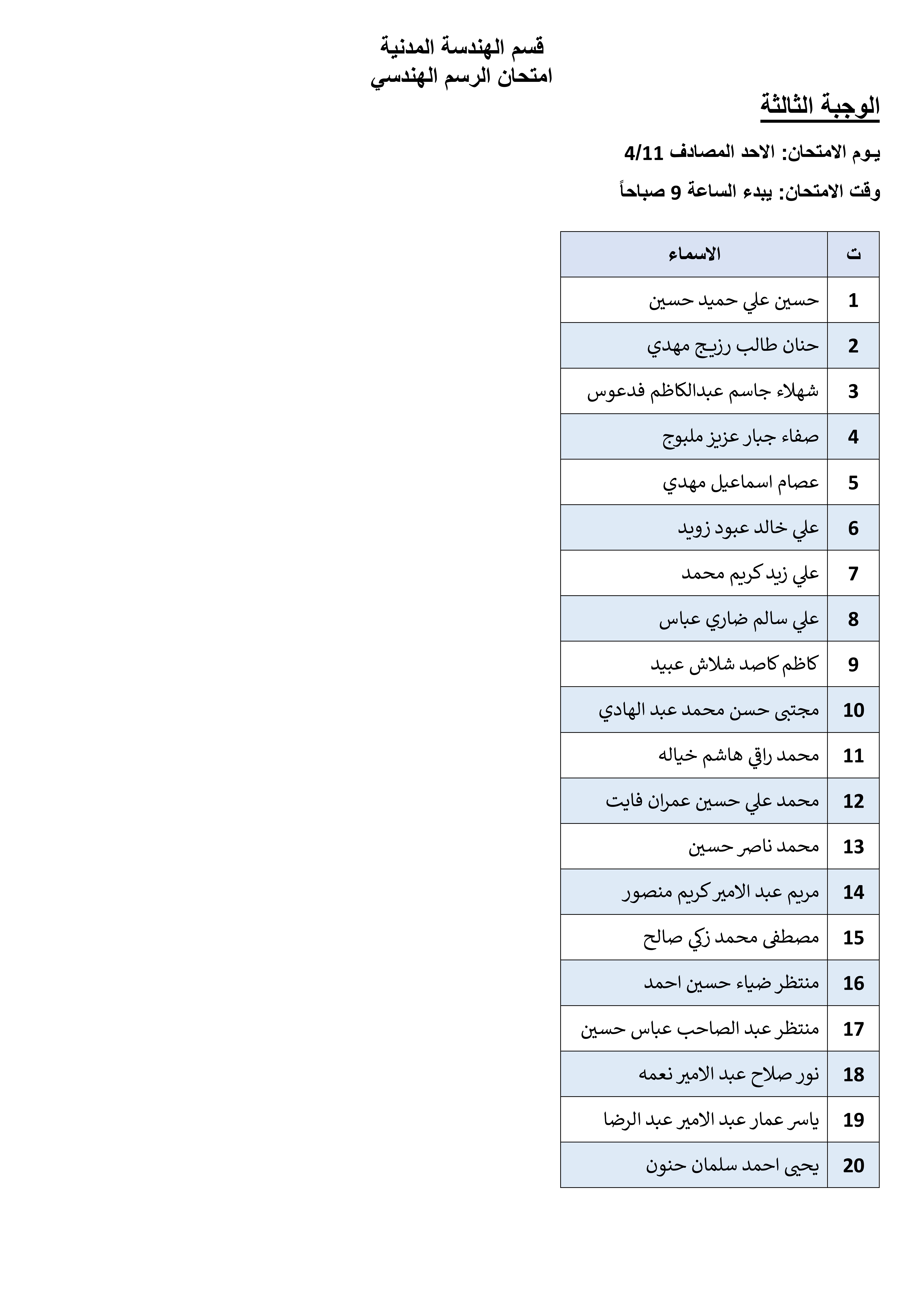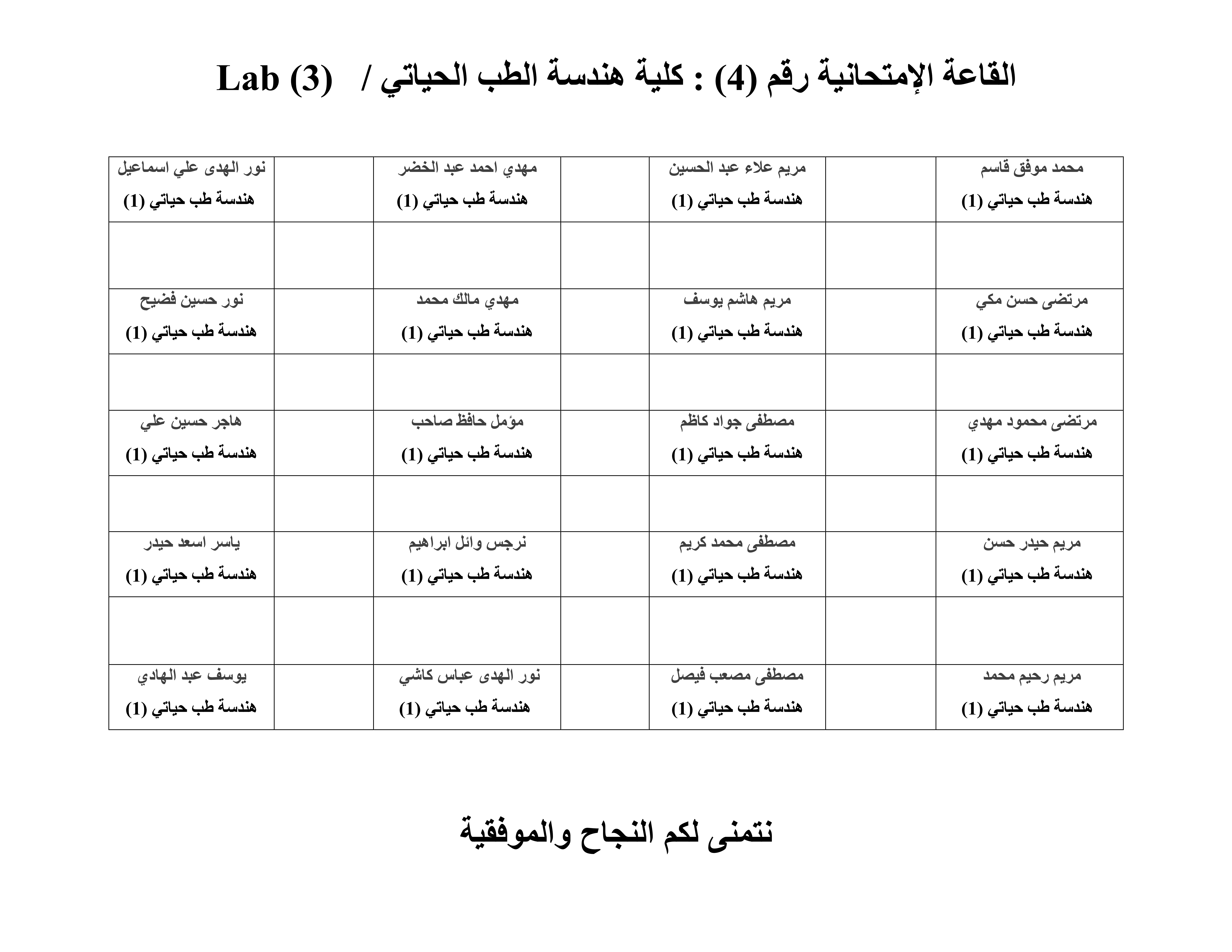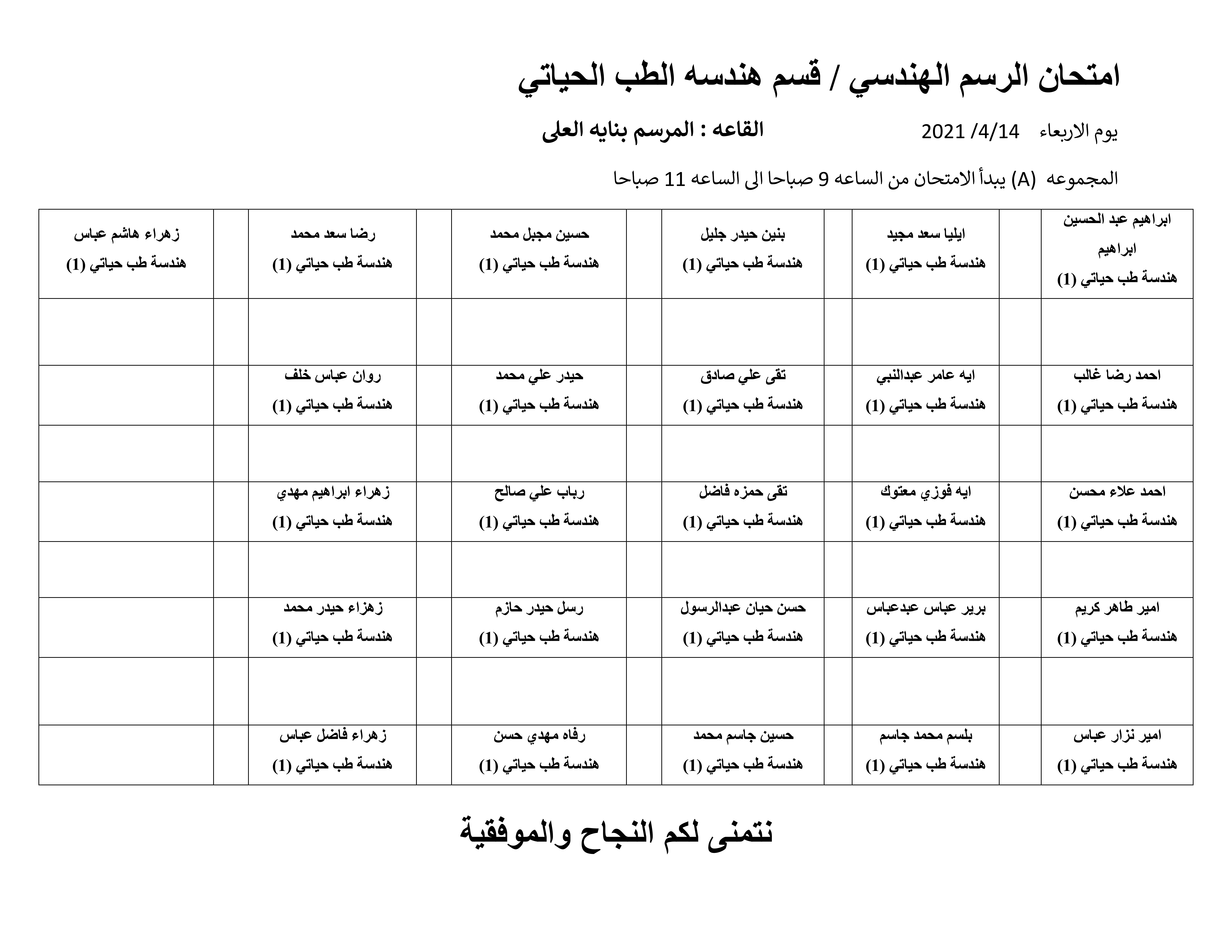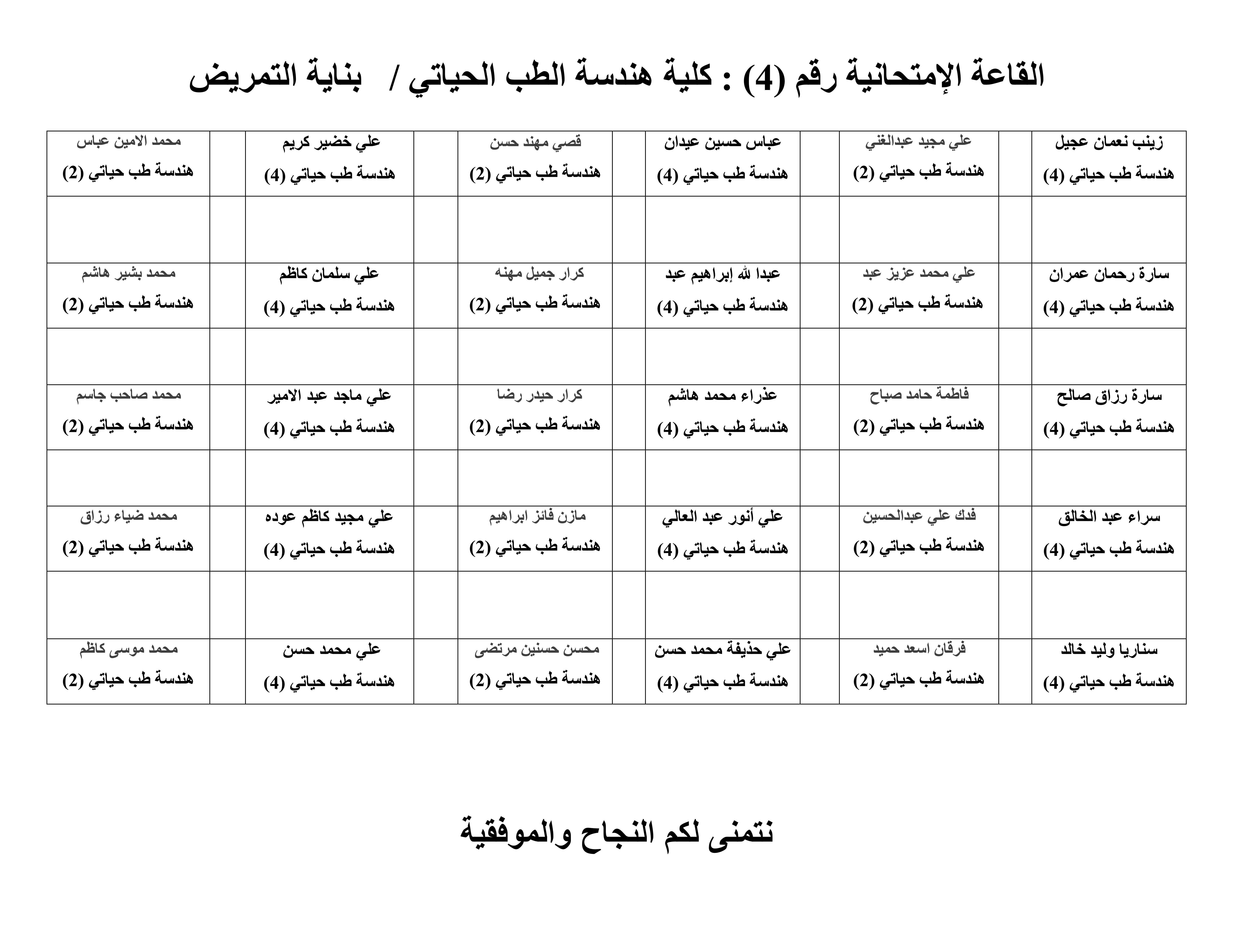 نسأل الله سبحانه و تعالى ان يمن على طلبتنا الاعزاء بالنجاح و التوفيق في استكمال مشوارهم الدراسي.