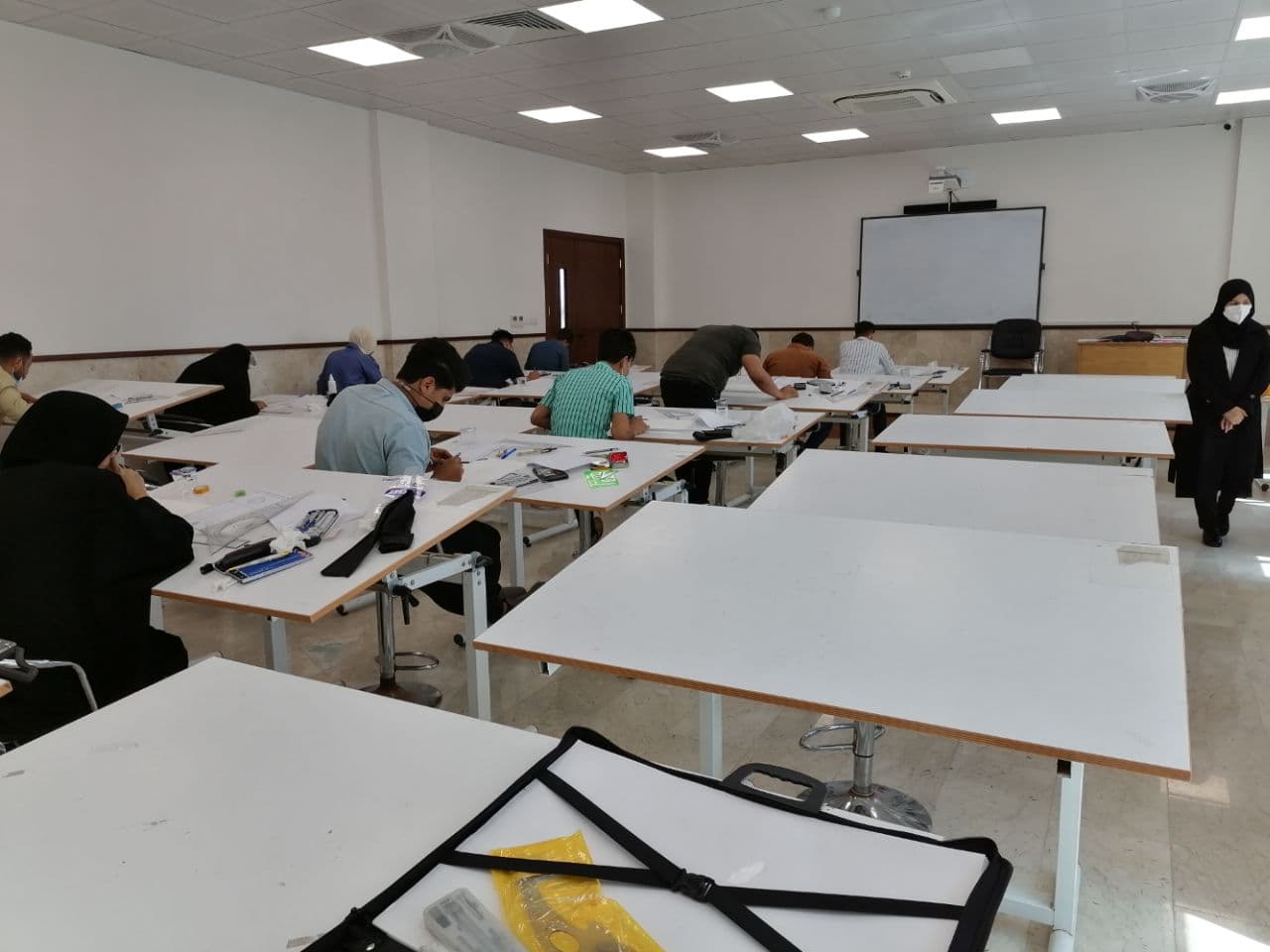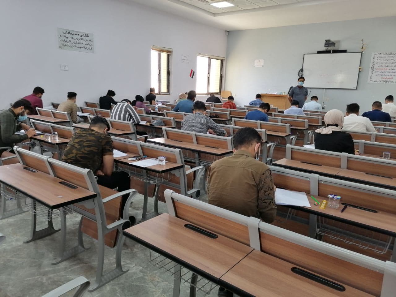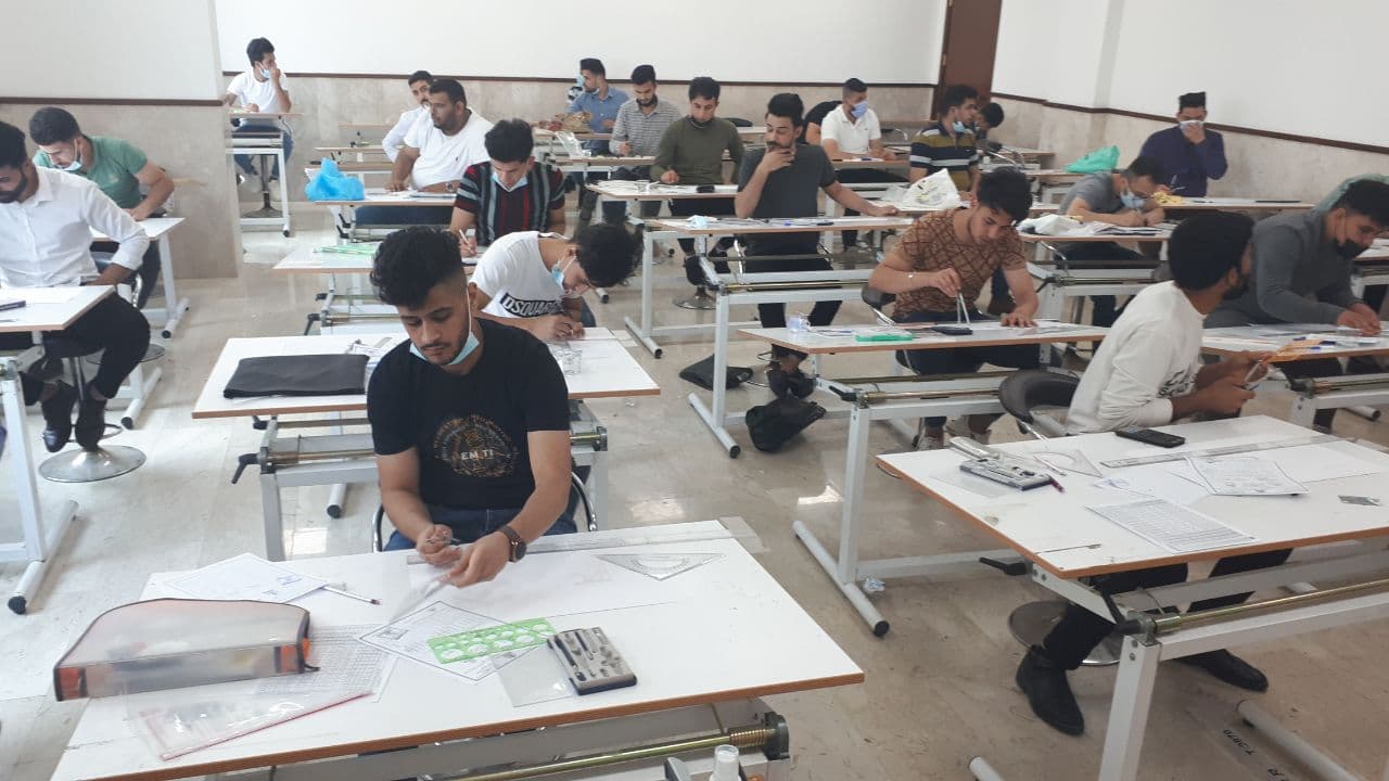 جانب من القاعات الامتحانية لقسم التكييف والتبريد في جامعه وارث الأنبياء ليوم الثلاثاء المصادف ٦ / ٤ / ٢٠٢١ والذي يعكس صوره مثاليه لتطبيق التباعد الاجتماعي والالتزام بارتداء الكمامات تنفيذا لقرارات خلية الأزمة لمنع تفشي فيروس كورونا.