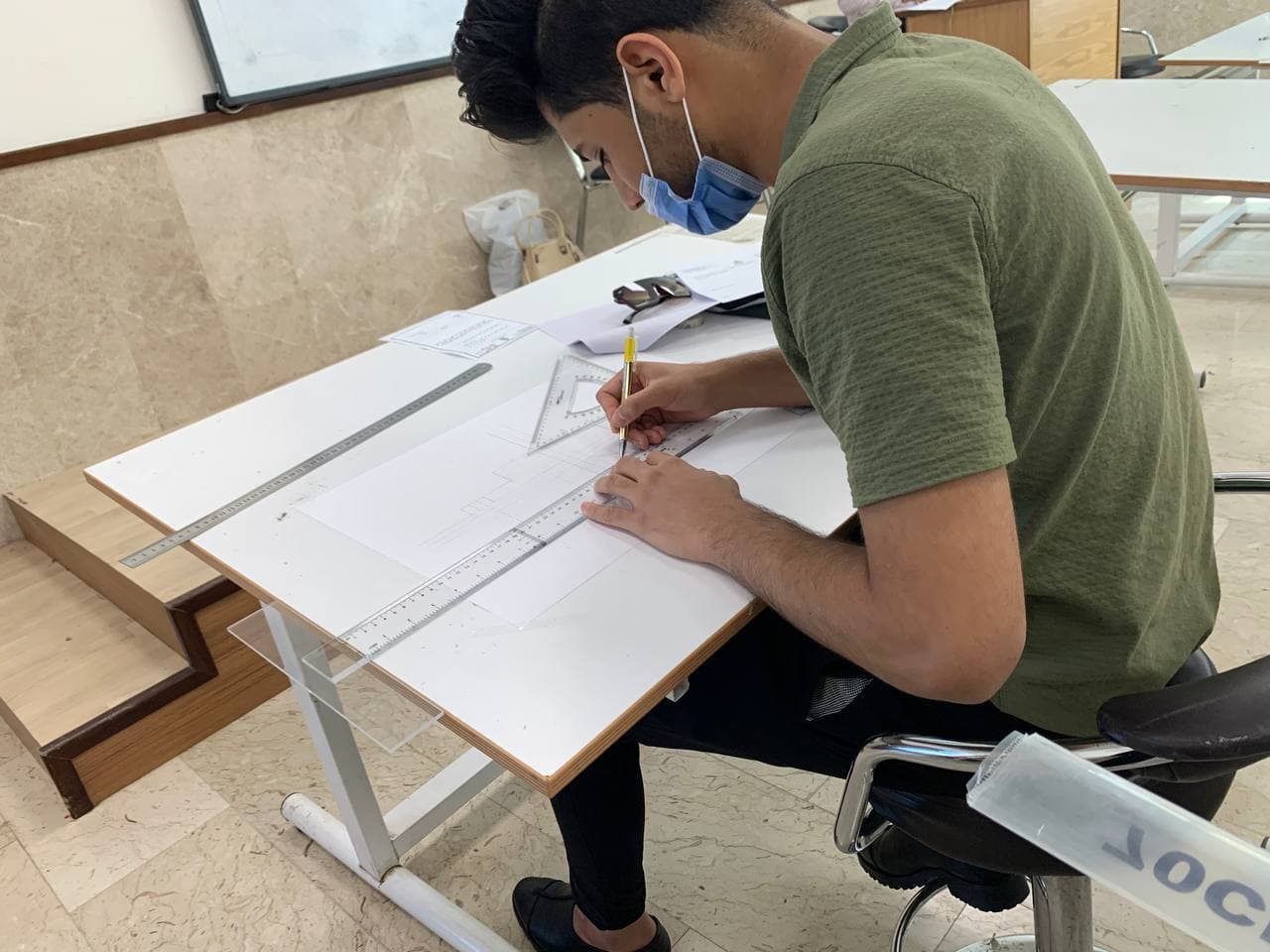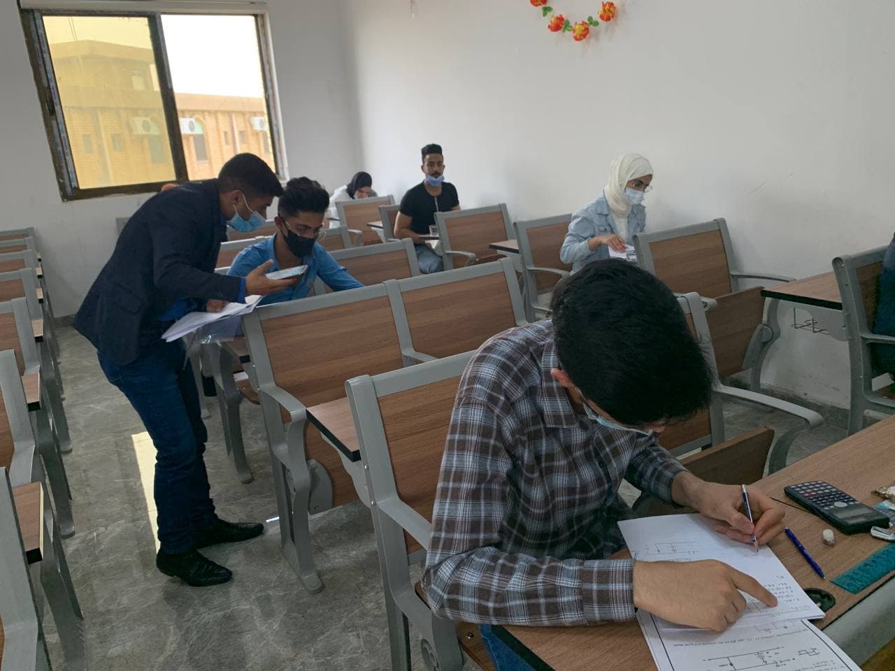 تفقد السيد عميد كُلْيَة الهندسة الدكتور رؤوف محمد القاعات الامتحانية أثناء اداء طلبة كُلْيَة الهندسة الامتحانات النهائية للفصل الأول - الدور الأول حرصاً منه على أجراء الامتحانات وفق اجراءات وقائية مشددة وحسب توجيهات اللجنة العليا للصحة و السلامة الوطنية.