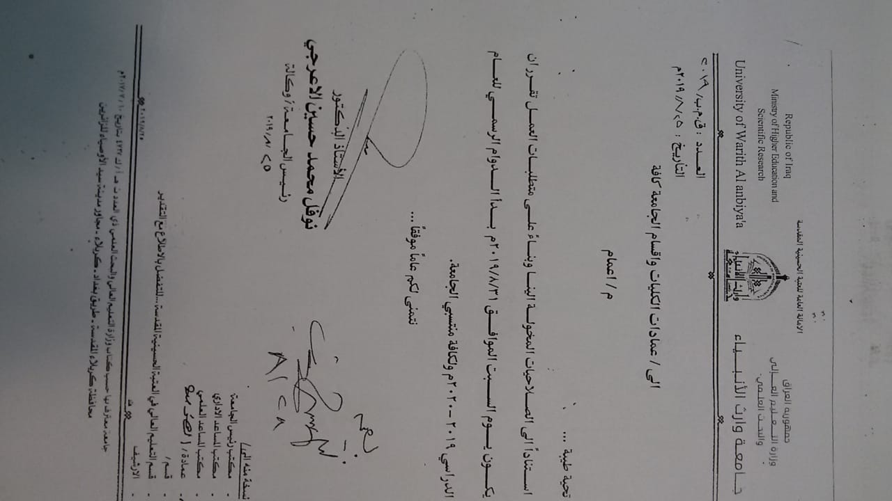 حرصاً من القائمين على جامعة وارث الأنبياء (ع) على استمرار المسيرية التعليمية بأفضل حالاتها و اضهارها بابها صورها.