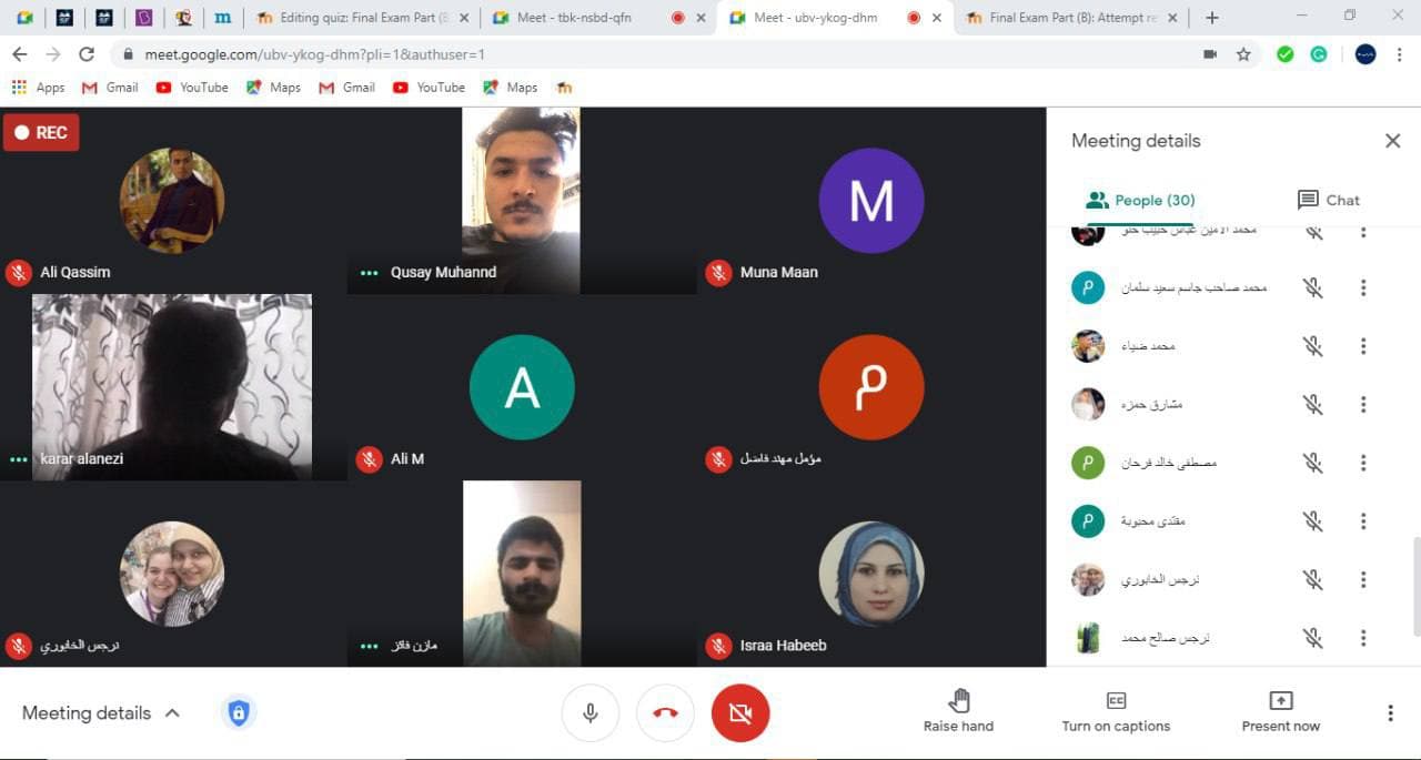 2. على جميع الطلبة التأكد من اسمائهم الرباعية الصحيحة في منصة Google meet وإبلاغ رئيس القسم في حال وجود خطأ.