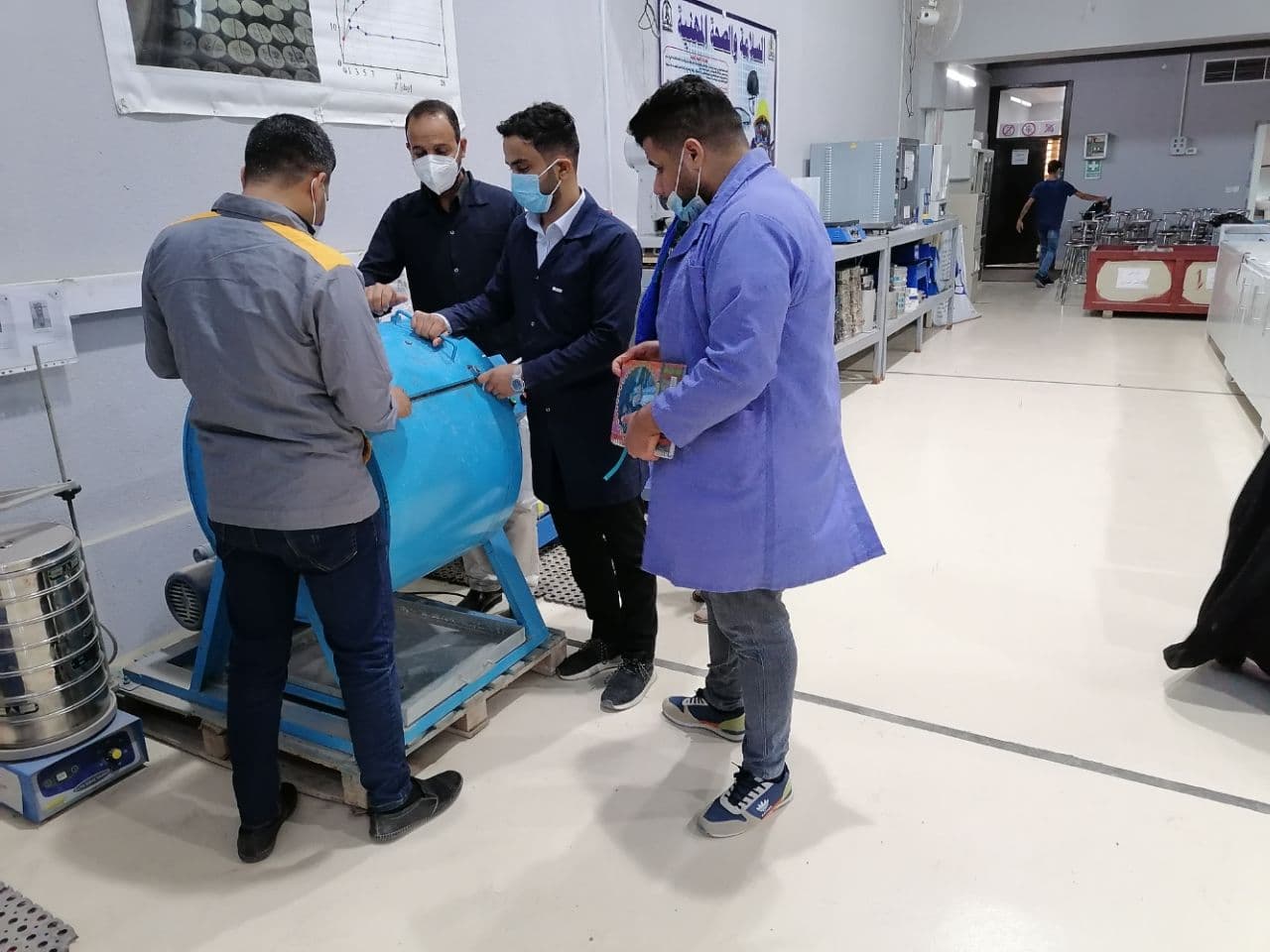 جانب من المحاضرة العملية لطلبة المرحلة الثانية - الدراسة المسائية في قسم الهندسة المدنية لمادة تكنولوجيا الخرسانة