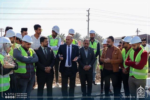 نظم قسم الهندسة المدنية في جامعة وارث الأنبياء (عليه السلام) زيارة ميدانية لطلبته إلى مشاريع التوسعة الجاري تنفيذها في الحرم الجامعي، وذلك بهدف تعزيز خبراتهم العملية واطلاعهم على أحدث أساليب البناء وتطبيقات الهندسة المدنية المستخدمة في تطوير البنية التحتية للجامعة.