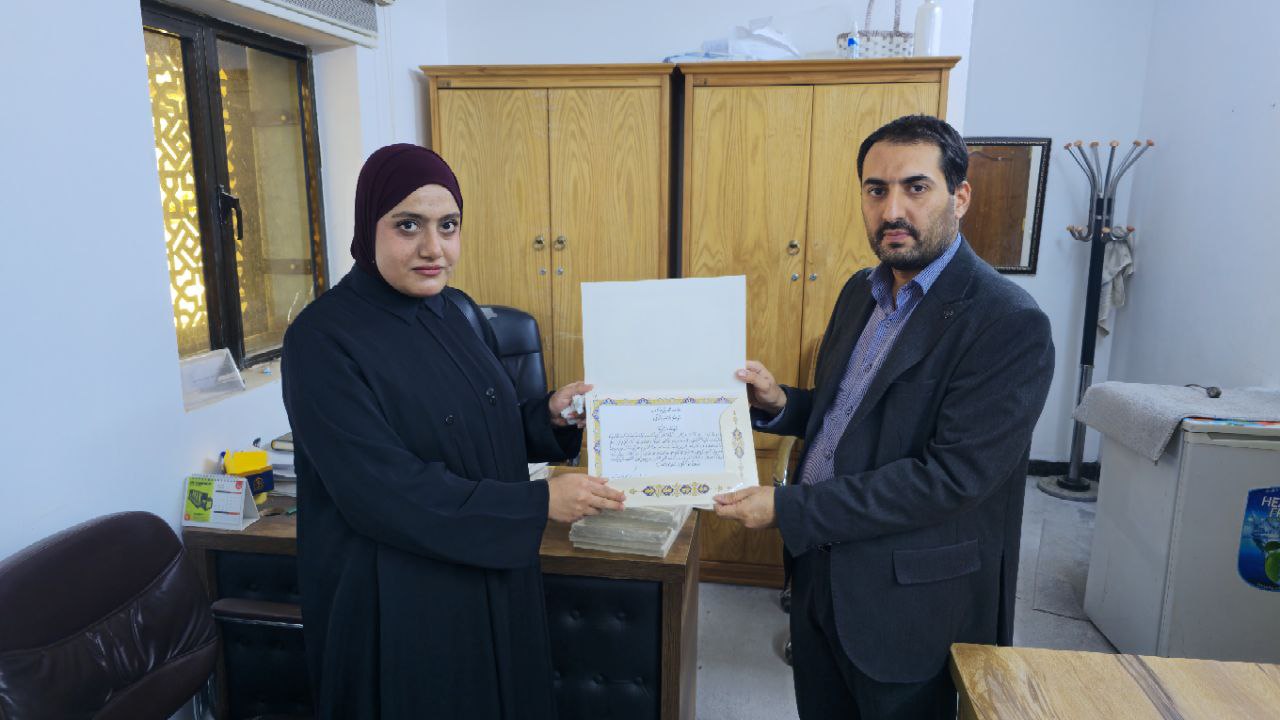 سلمت كلية العلوم الإسلامية شهادات وكتب مشاركة لعدد من الطلبة الذين أسهموا في كتابة المصحف الشريف ضمن مشروع “كلمات من نور” بنسخته الاولى، وذلك تقديراً لجهودهم المتميزة ومشاركتهم الفاعلة في هذا العمل القرآني المبارك.
