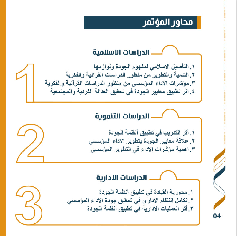 في إطار الجهود المستمرة لتعزيز الجودة وتطوير الأداء المؤسسي، تنظم العتبة الحسينية المقدسة مؤتمرها الثاني بعنوان "بالتنمية والتطوير نرتقي". تحت عنوان "فاعلية الجودة في تطوير الأداء المؤسسي"، بالتعاون مع جامعة وارث الأنبياء، وكلية العلوم الإسلامية، وقسم تطوير الموارد البشرية.
