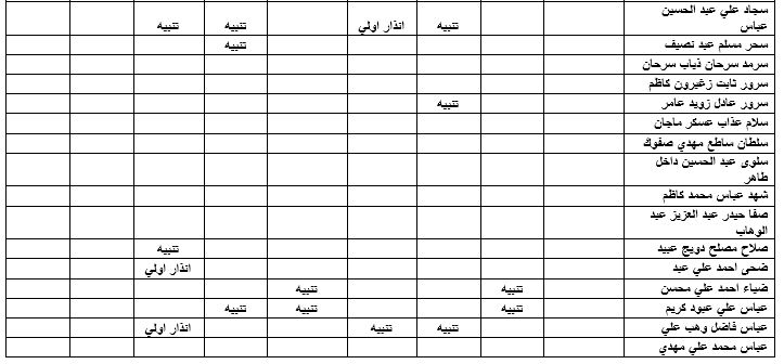 غيابات المرحلة الاولى شعبة(ب)