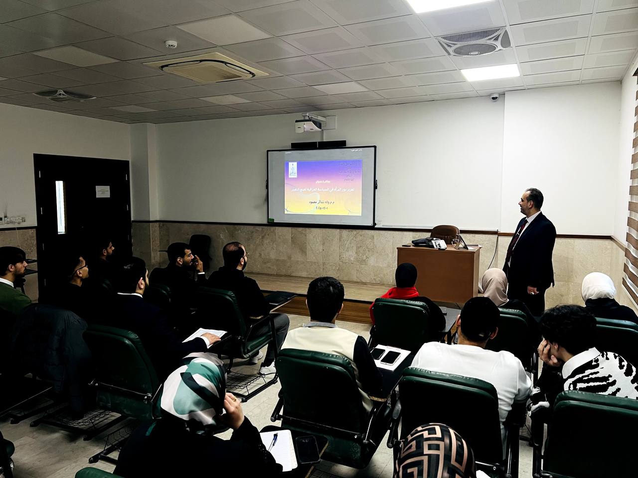 اقامت كلية الاعلام في جامعة وارث الانبياء عليه السلام، ندوة علمية حملت عنوان "تعزيز دور المرأة في السياسة العراقية لصنع التغيير" قدمها التدريسي في الكلية الاستاذ (ولاء شاكر محمود)، بين من خلالها ان المشاركة السياسية النسوية يعنى بها قدرة النساء على الانخراط في العملية السياسية بمختلف مستوياتها، سواء في الانتخابات، أو الانتساب للأحزاب، أو المناصب التشريعية والتنفيذية، أو صياغة السياسات العامة، أو التأثير في اتجاهات الرأي العام، وهي تمثل امتداداً لعملية تمكين أوسع، تشمل التمكين الاقتصادي والاجتماعي والثقافي.