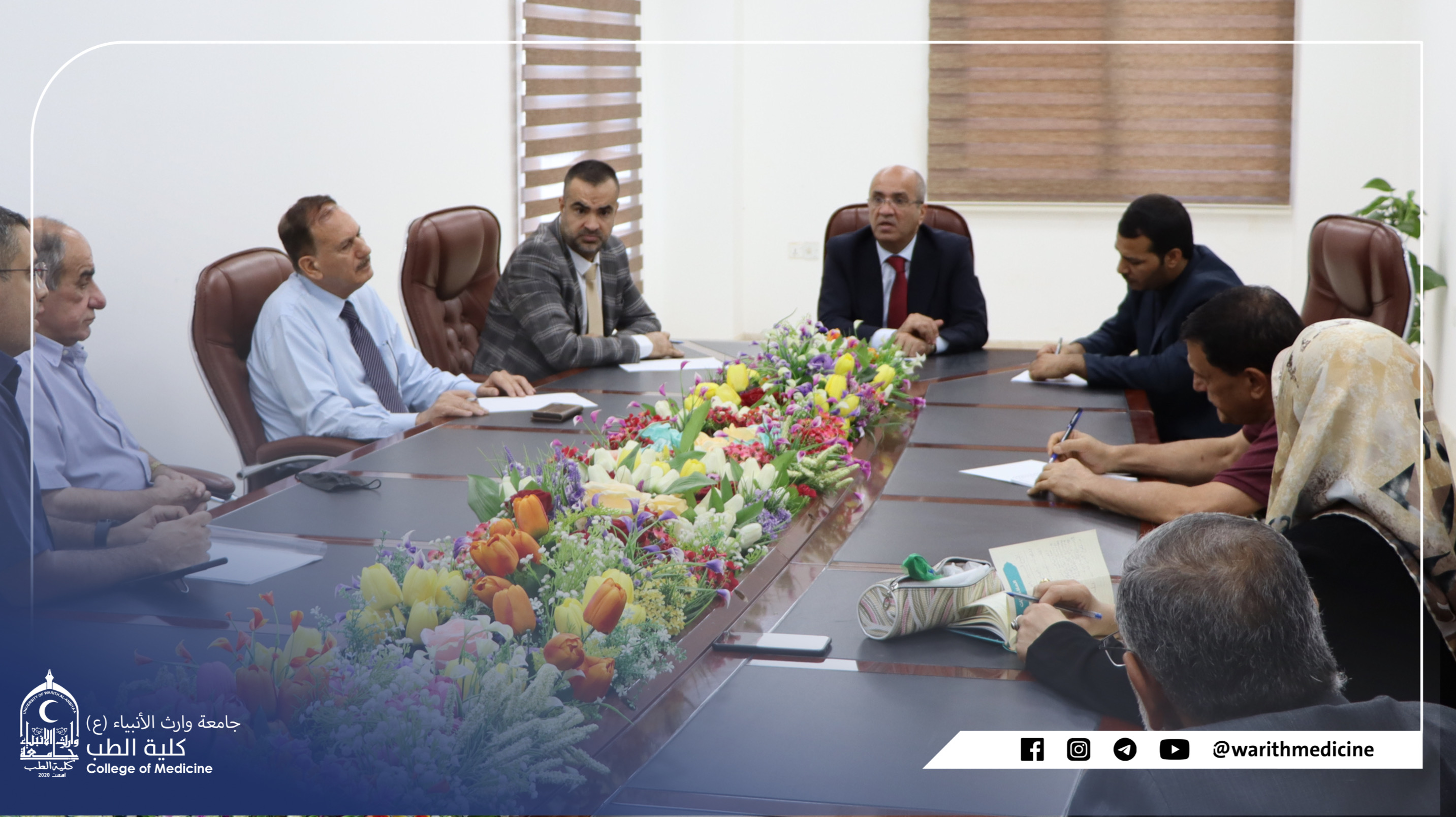 عقد مجلس كلية الطب في جامعة وارث الانبياء(عليه السلام) جلسته الإعتيادية لمناقشة جملة من التحضيرات المهمة للعام الدراسي القادم.
