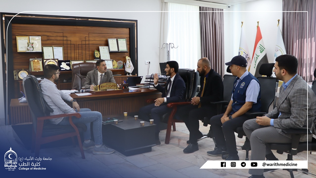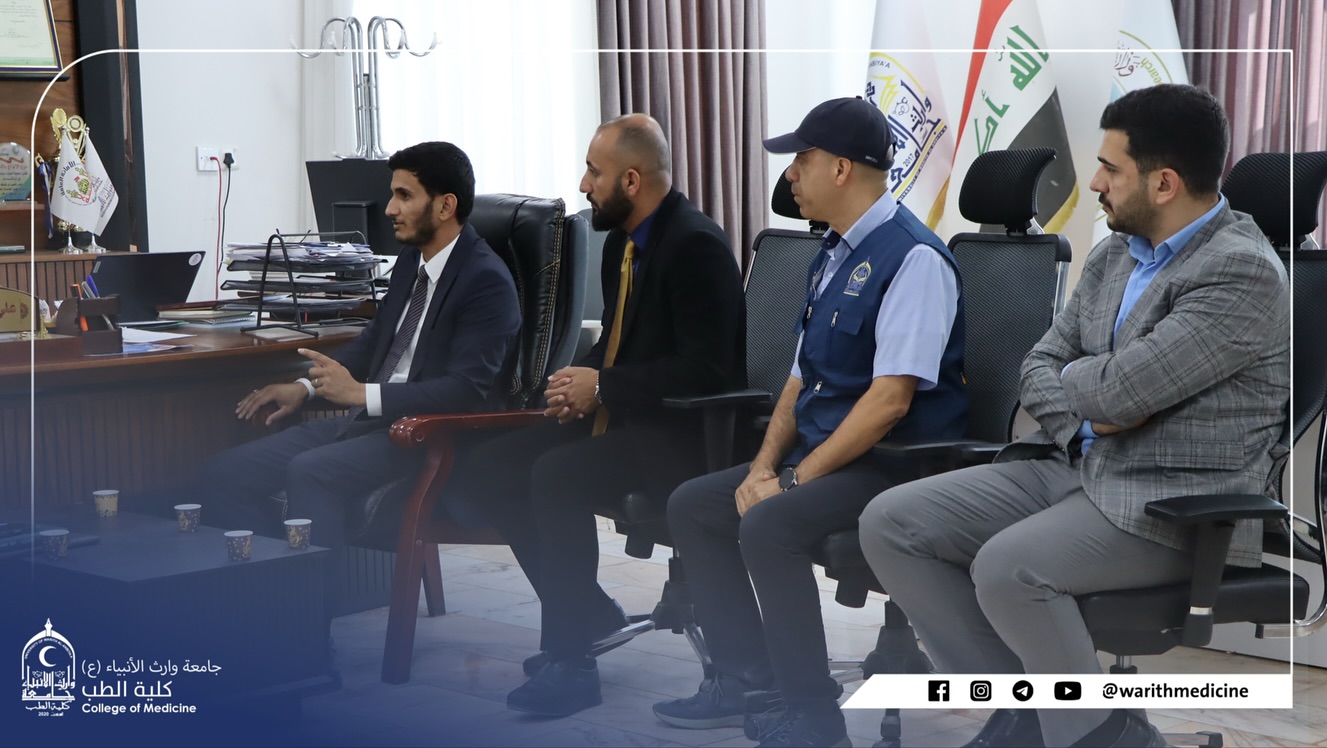 لمتابعة نجاح الامتحانات الإلكترونية بنظام  TBLعقد السيد عميد كلية الطب في جامعة وارث الأنبياء عليه السلام الأستاذ الدكتور علي عبد سعدون الغزي اجتماعًا مع مدير مركز الحاسبة الإلكترونية ومسؤولي الشعب في المركز ومسؤول الشعبة الرقمية في الكلية لمناقشة سير ونجاح الامتحانات الإلكترونية التي أُجريت بنظام التعليم القائم على حلّ المشكلات (TBL) عبر الإنترنت. وتناول الاجتماع تقييم الأداء التقني في القاعات وكفاءة البنية الإلكترونية وآليات الدعم الفني التي أسهمت في نجاح التجربة.
