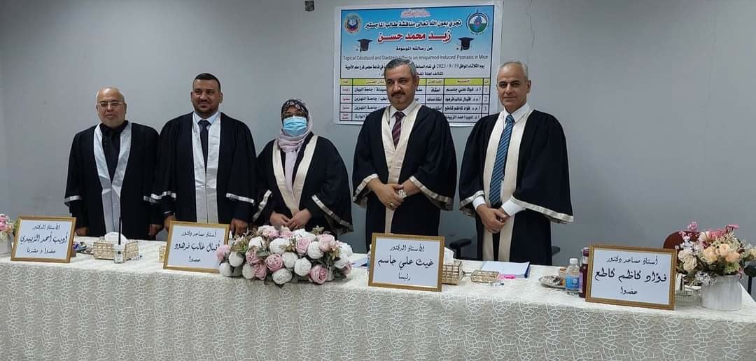 شارك الاستاذ الدكتور أديب أحمد الزبيدي رئيس فرع علم الأدوية عضواً ومشرفاً في لجنة مناقشة طالب الماجستير (زيد محمد حسن)