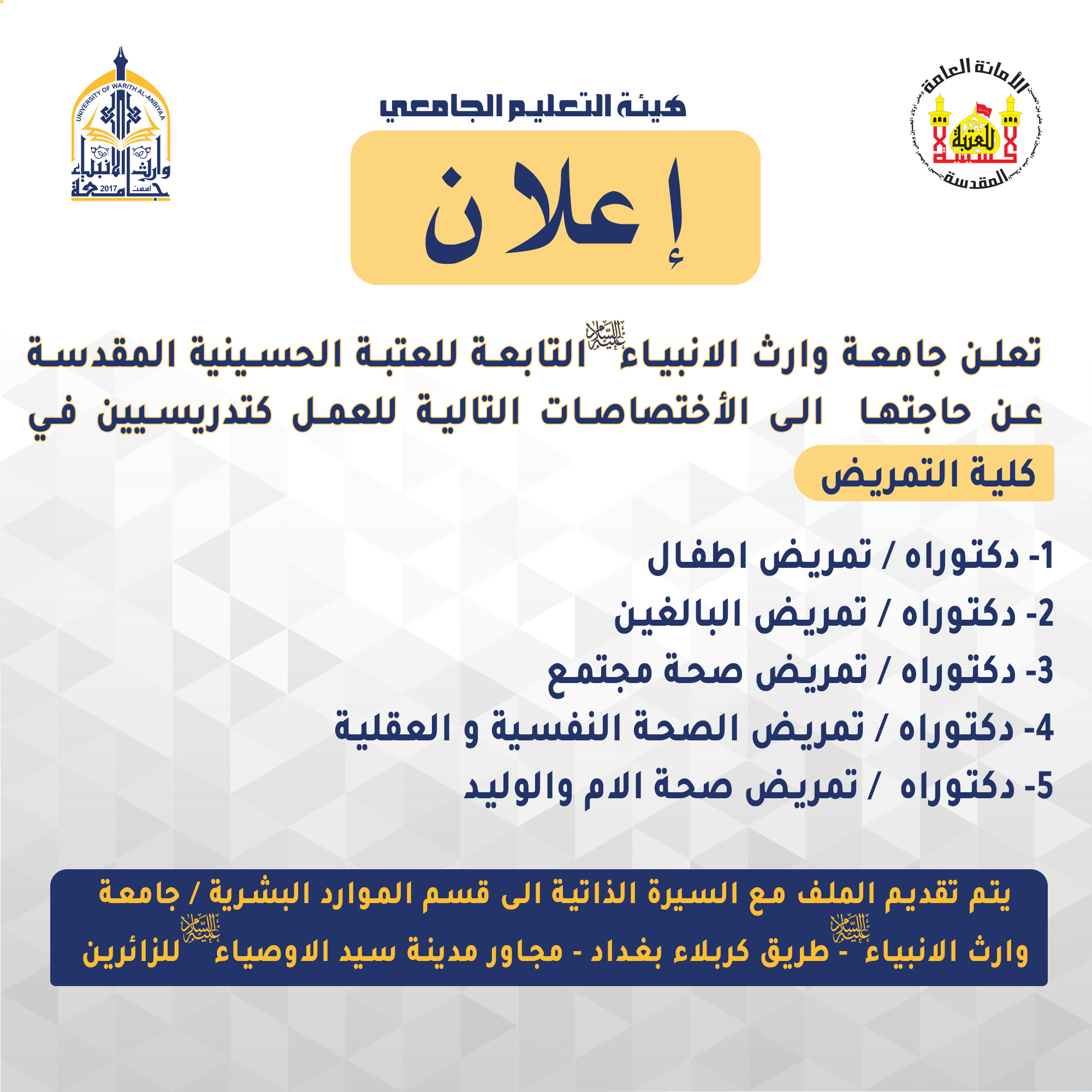 استئناف الامتحانات النهائية الحضورية في كليات واقسام جامعة وارث الانبياء(عليه السلام)
