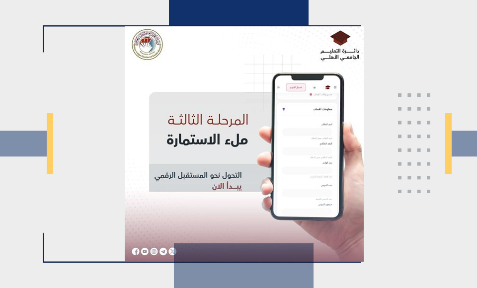 تم اطلاق مرحلة ملء البيانات  وتفعيل القنوات الخاصة المتعلقة بالتقديم الى الجامعات الاهلية العراقية.