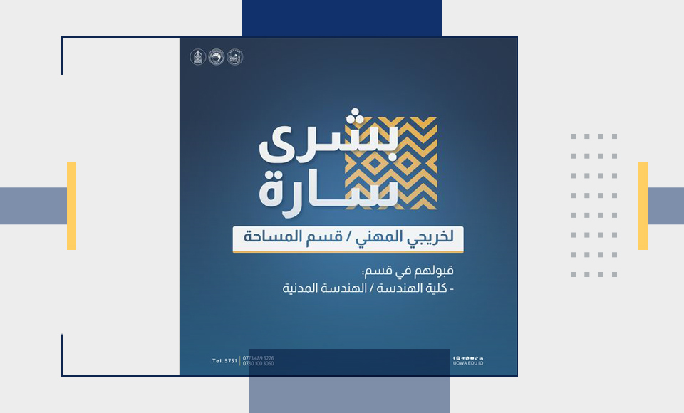 قسم الهندسة المدنية في جامعة وارث الأنبياء يفتح أبوابه لخريجي الإعدادية المهنية تخصص المساحة