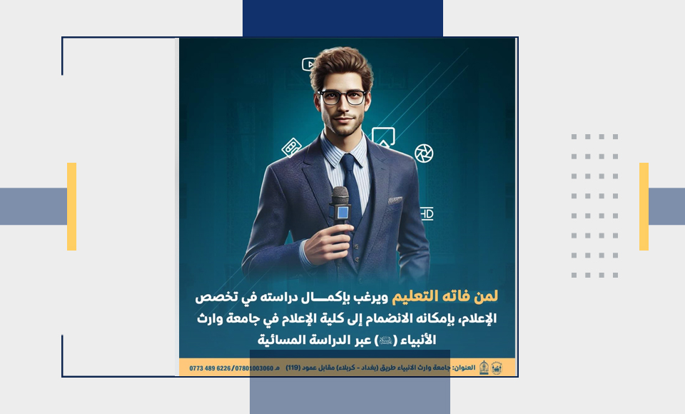 فرصة للالتحاق بتخصص الإعلام في جامعة وارث الأنبياء عبر الدراسة المسائية