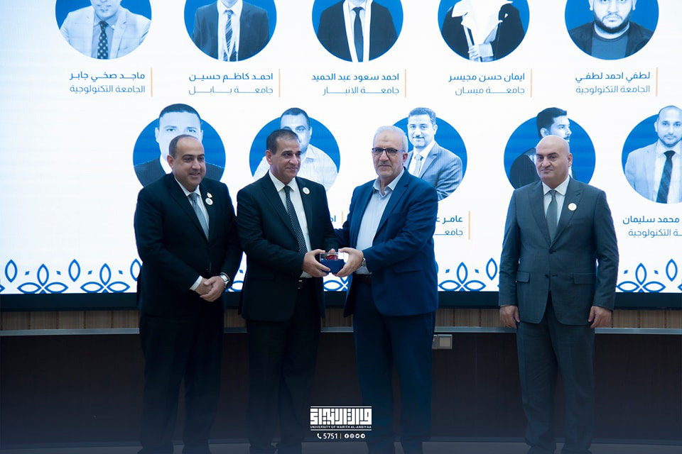 كرم السيد عميد كلية الهندسة الاستاذ المساعد الدكتور حسين هادي العوادي نيابة عن الجمعية الجيوتقنية العراقية السيد رئيس الجامعة الاستاذ الدكتور إبراهيم الحياوي والسيد المساعد الإداري ورئيس الهيئة المؤسسة الاستاذ الدكتور نوفل الاعرجي.