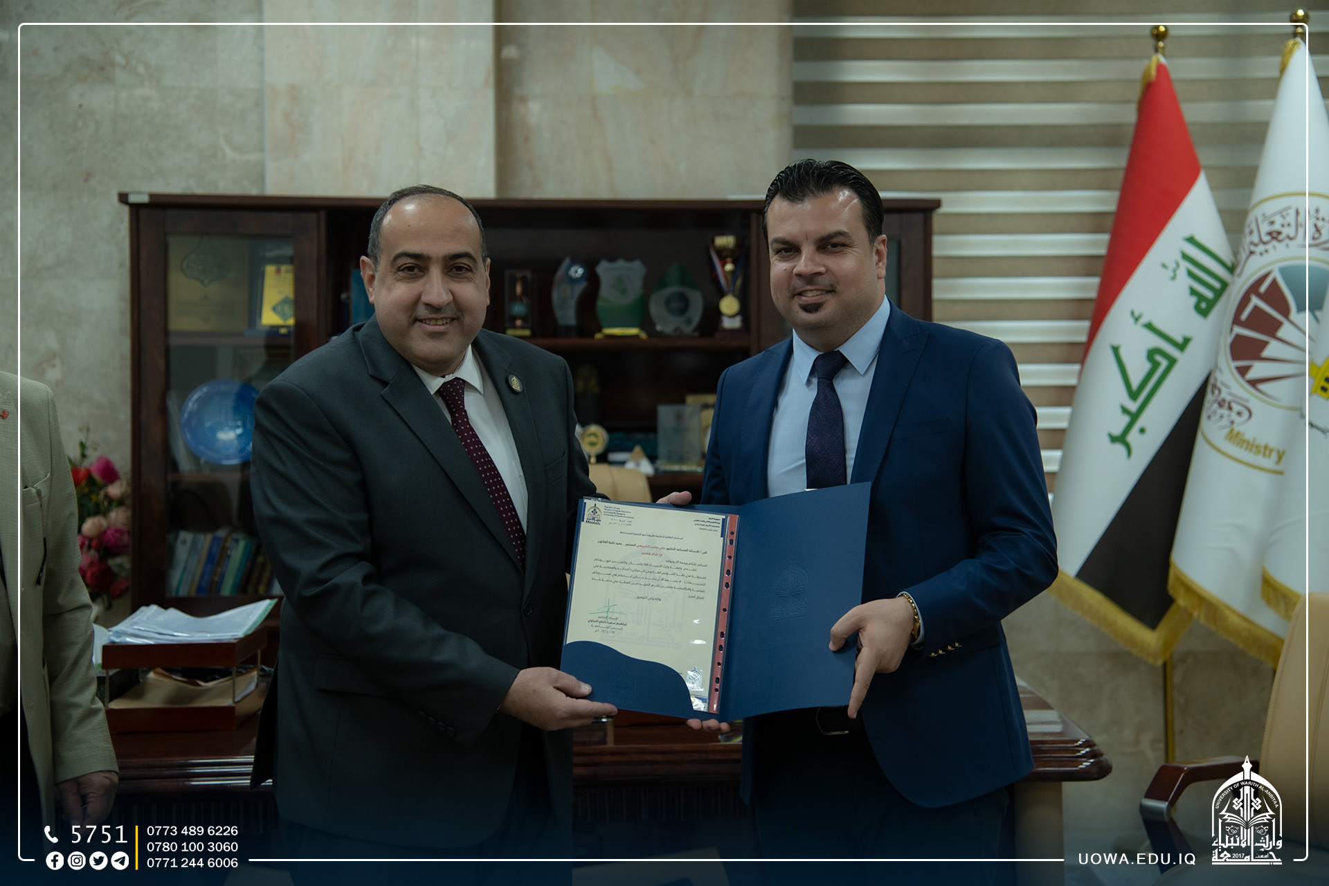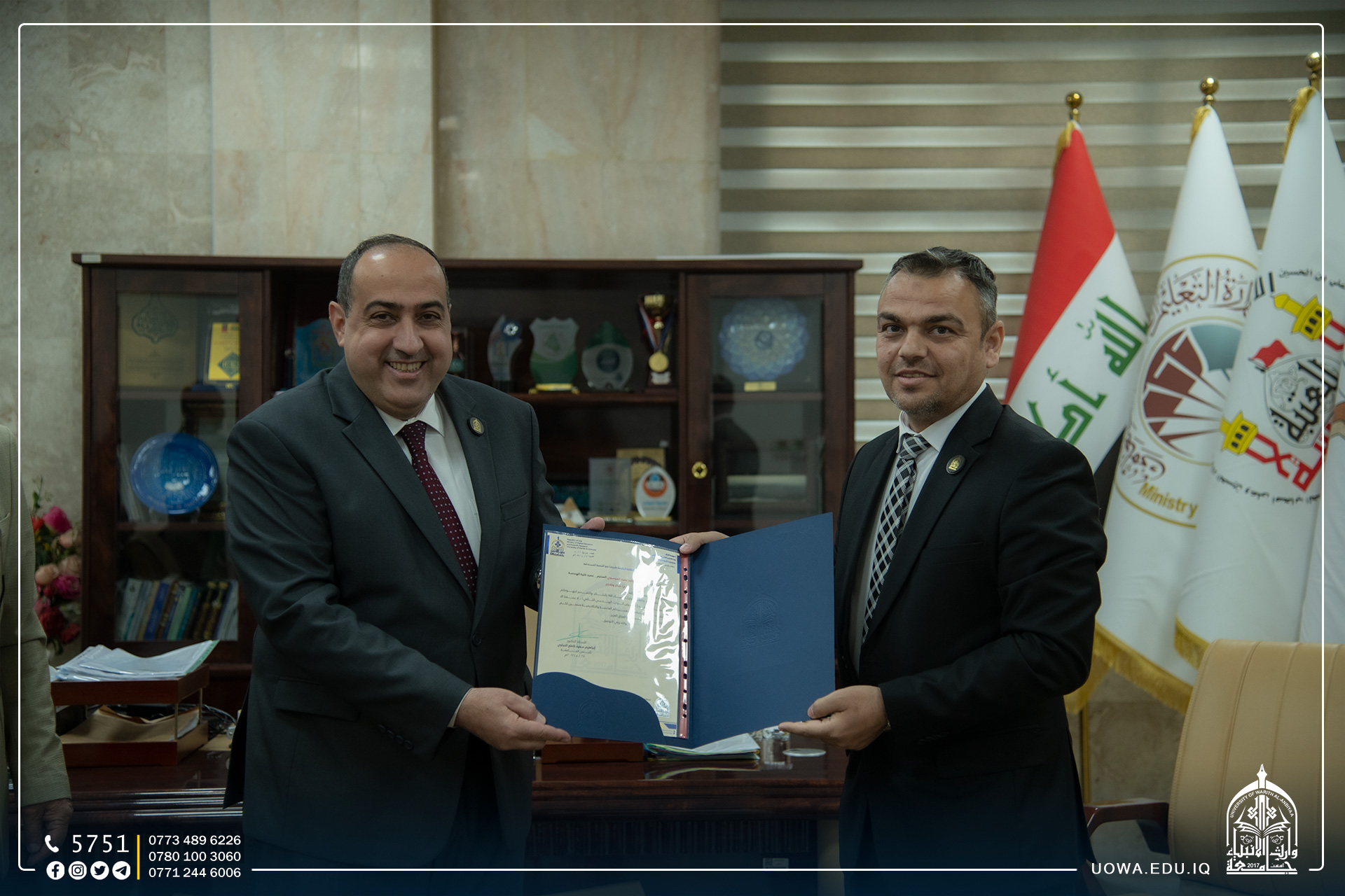 ايماناً من رئاسة جامعة وارث الانبياء (عليه السلام) بأهمية دعم النشاطات العلمية،كرم رئيس الجامعة الاستاذ الدكتور ابراهيم الحياوي عميد كلية الهندسة الاستاذ الدكتور واقد حميد الموسوي لجهوده المبذولة في إقامة ( المعرض الهندسي الثاني لمشاريع التخرج والنتاجات العلمية ) الذي عقد في رحاب جامعة وارث الانبياء (عليه السلام ).