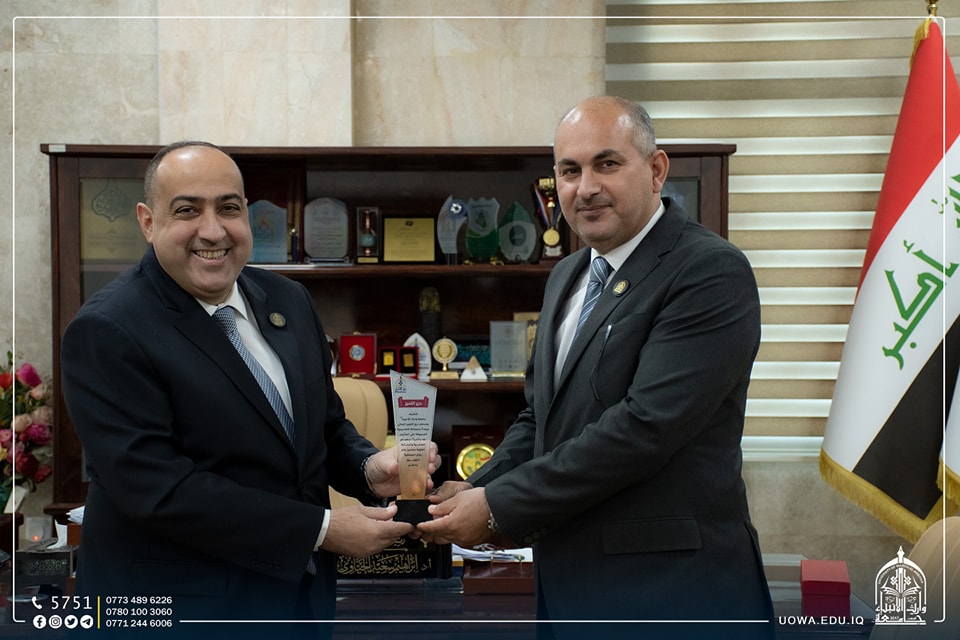 كرم رئيس الجامعة الاستاذ الدكتور ابراهيم الحياوي، باحثي الجامعة المتميزين بدرع "التميز البحثي" والشكر والتقدير للأستاذ المساعد الدكتور انمار فالح ديكان من كلية الهندسة، والاستاذ المساعد الدكتور نور الساعدي من كلية العلوم الإسلامية، والاستاذ المساعد الدكتور ضياء البناي من كلية الادارة والاقتصاد، لجهودهم العلمية والبحثية من أجل رفع سمعة الجامعة الاكاديمية سائلن الله عزوجل الموفقية لهم لخدمة المسيرة العلمية في بلدنا العزيز.