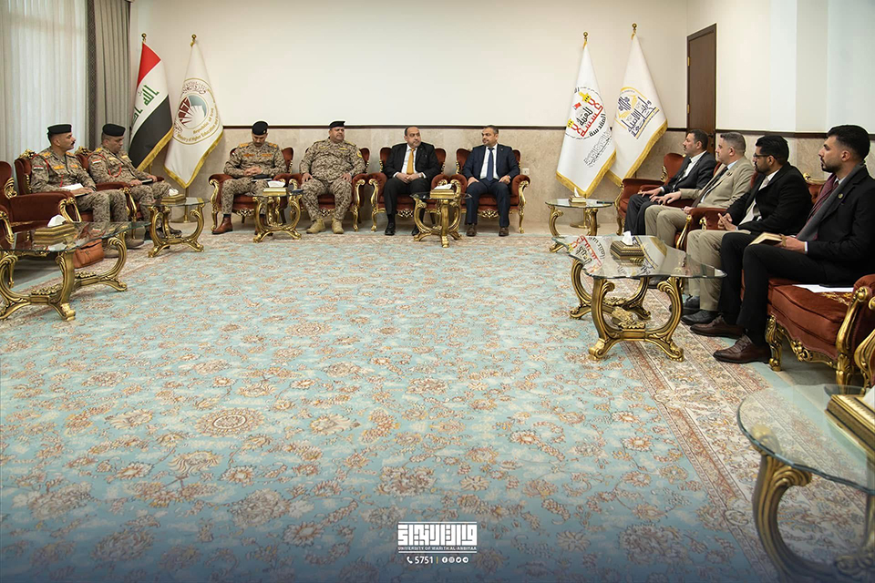 The President of the University of Warith Al-Anbiyaa (PBUH), Prof. Dr. Ibrahim Al-Hayawi, received Major General Dr. Qaisar Abdul-Razzaq, Director of Medical Rehabilitation and Wounded Care at the Ministry of Defence, to discuss prospects for scientific cooperation between the university and the Ministry.