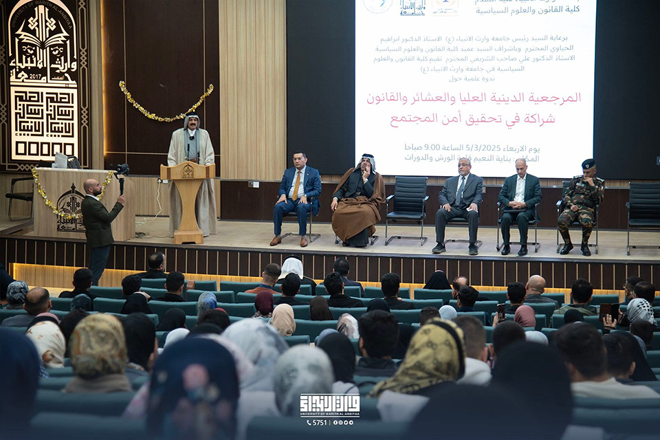 The symposium featured Brigadier General Alaa Al-Hasnawi, Director of the Karbala Crimes Department, who highlighted the crucial role of religious authority and tribes in reinforcing the law and ensuring societal stability. Al-Hasnawi emphasized the importance of effective coordination between security institutions, legal bodies, and tribal leaders to achieve peace and security in the community.