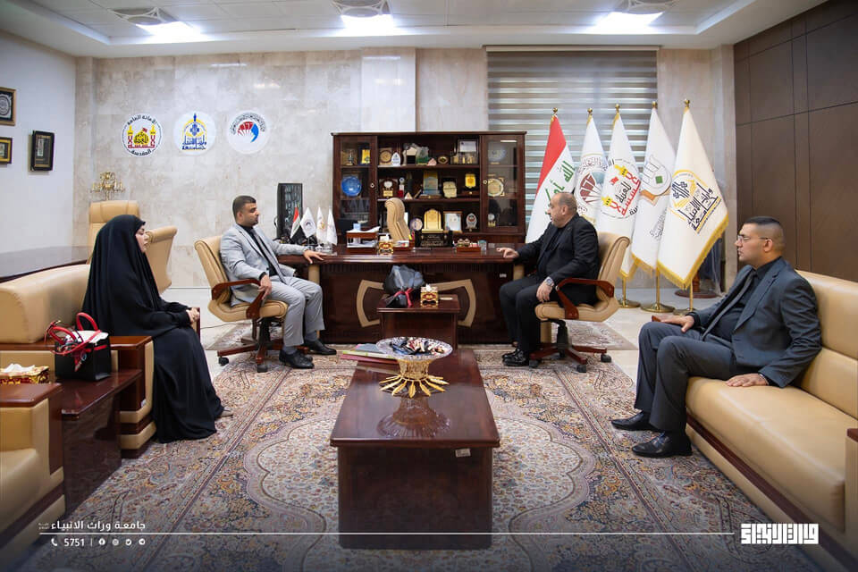 The President of the University of Warith Al-Anbiyaa (PBUH), Prof. Dr. Ibrahim Saeed Al-Hayawi, received a delegation from the Iraqi Syndicate for Training and Development, headed by Mr. Mohammed Al-Moussawi, who expressed his gratitude to the university’s leadership for its active participation in the syndicate’s conference held under the patronage of the Holy Shrine of Imam Hussein (PBUH), praising the speech delivered by the university on behalf of the Shrine at the event.
