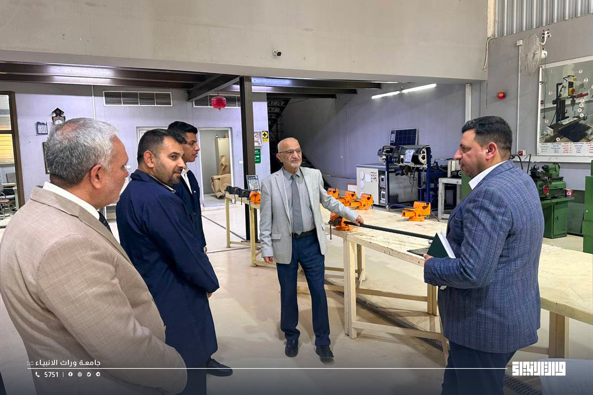 As part of the University of Warith Al-Anbiyaa’s (PBUH) commitment to fostering an integrated educational and research environment that meets international academic standards, Prof. Dr. Nofal Al-Aaraji, Vice President for Administrative Affairs, conducted a field tour of the engineering college’s workshops and scientific laboratories.