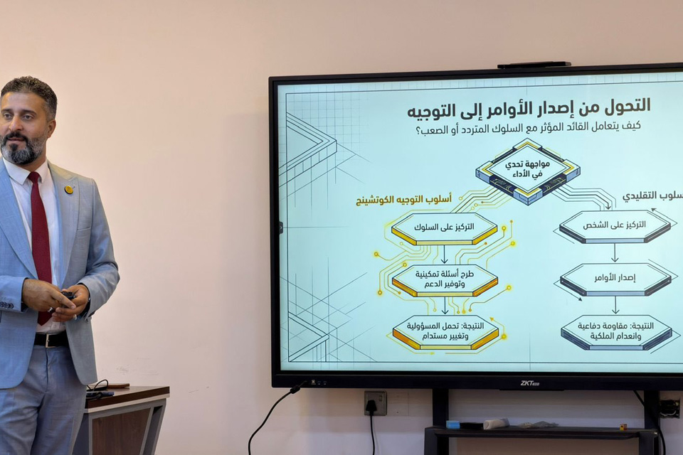 The first phase of the programme included a series of interactive workshops delivered by Assistant Lecturer Safaa Al-Saylawi and trainer Ali Zuhair Ahmed from the Department of Gardens and Technology Sciences. The sessions focused on developing skills in effective leadership, decision-making, and creating positive influence within various professional environments.