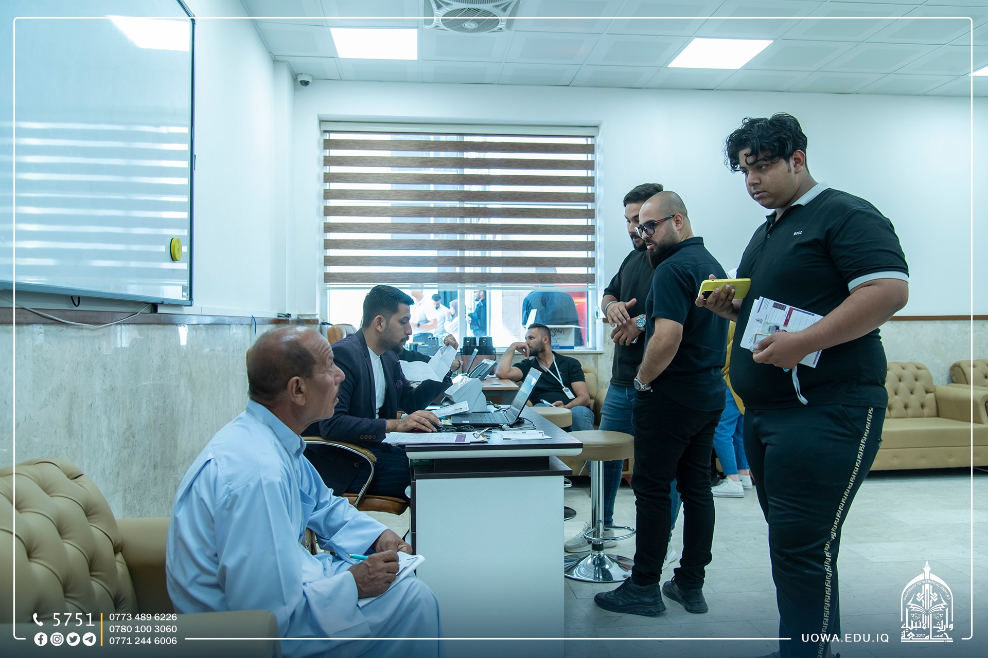 Registration Team at the University of Warith Al-Anbiyaa (peace be upon him) continues to receive dear students and their respected guardians to help them complete the that is available everyday of the week from 8 AM to 5 PM (except on Fridays from 8 AM to 2 PM) to receive you and answer your inquiries and to assist you in completing the first phase of the application. Creating a student account, Filling out data, Activating special channels. To prepare your account for the next step. Dear students, the application stages will be launched gradually through the electronic portal of the Private Higher Education Department. To access the Student Guide