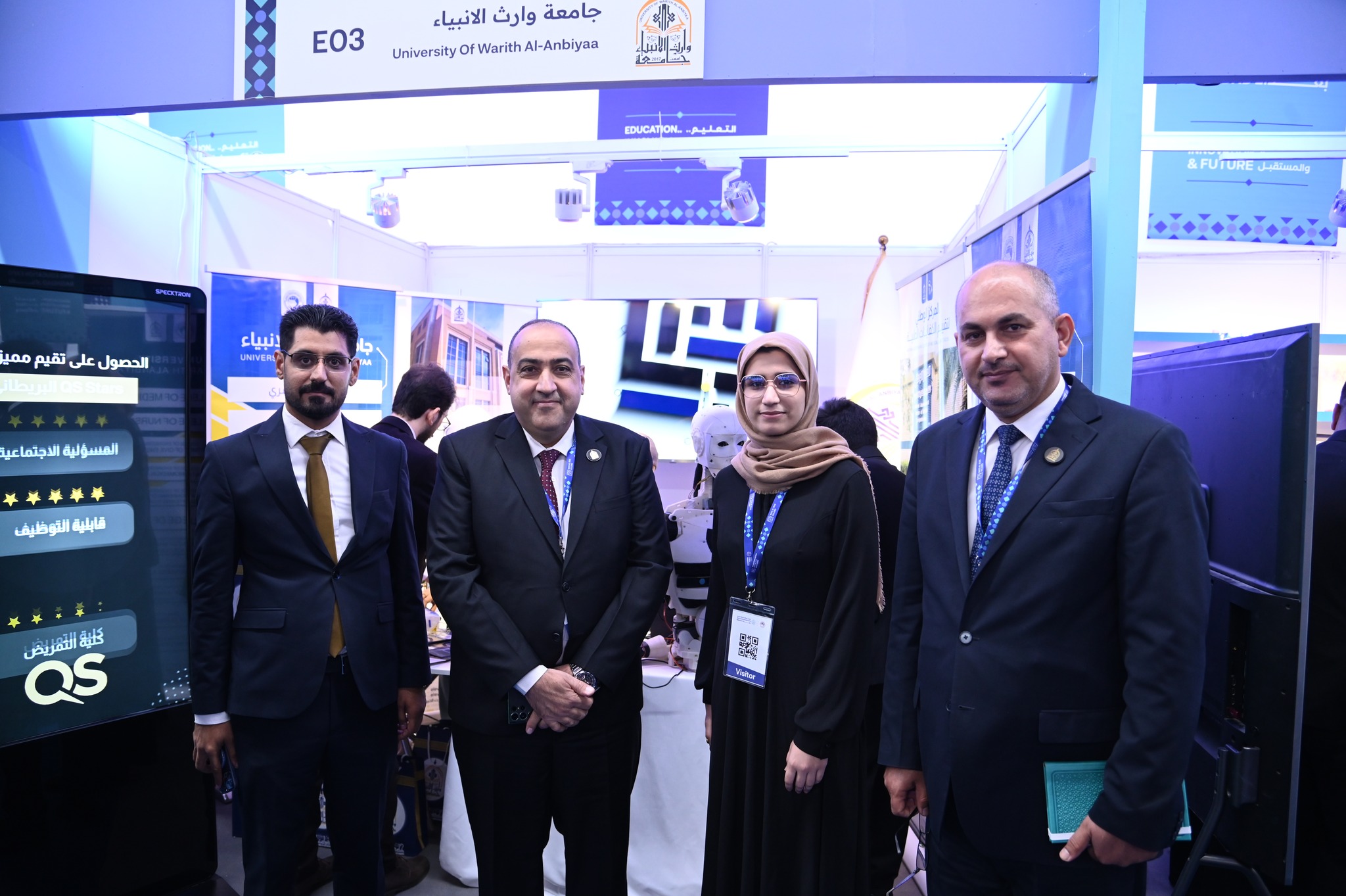 A visual glimpse of the visit of His Excellency the Minister of Higher Education and Scientific Research, Dr. Naeem Al-Aboudi, to the pavilion of the University of Warith Al-Anbiyaa (Peace Be Upon Him) as part of the activities of the Iraq Learning Exhibition and Conference.