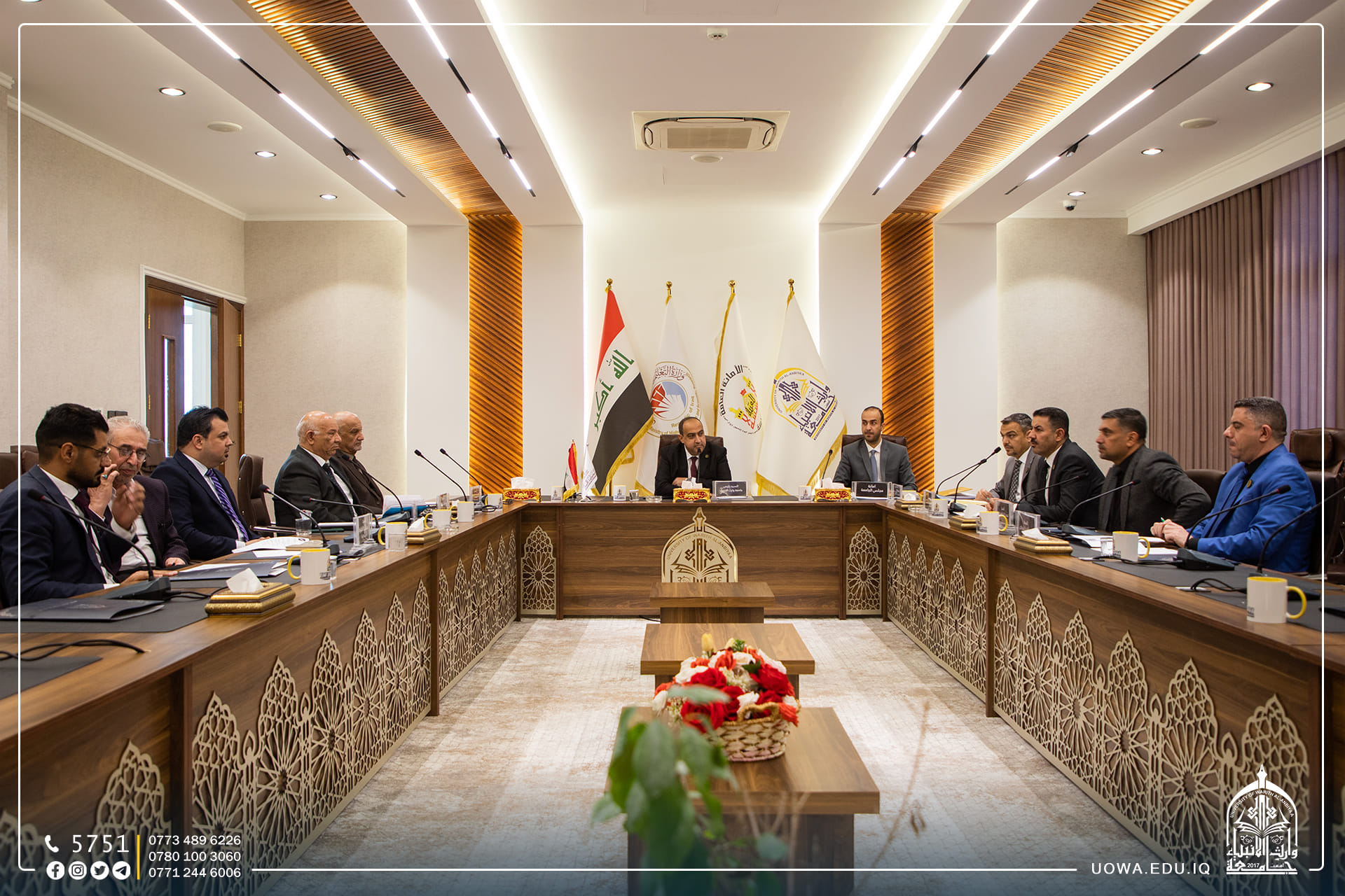 The University of Warith Al-Anbiyaa (peace be upon them) held its regular council session under the presidency of Professor Dr. Ibrahim Al-Hayawi. The meeting was attended by the vice presidents of the university for administrative and academic affairs, as well as the deans of the colleges.