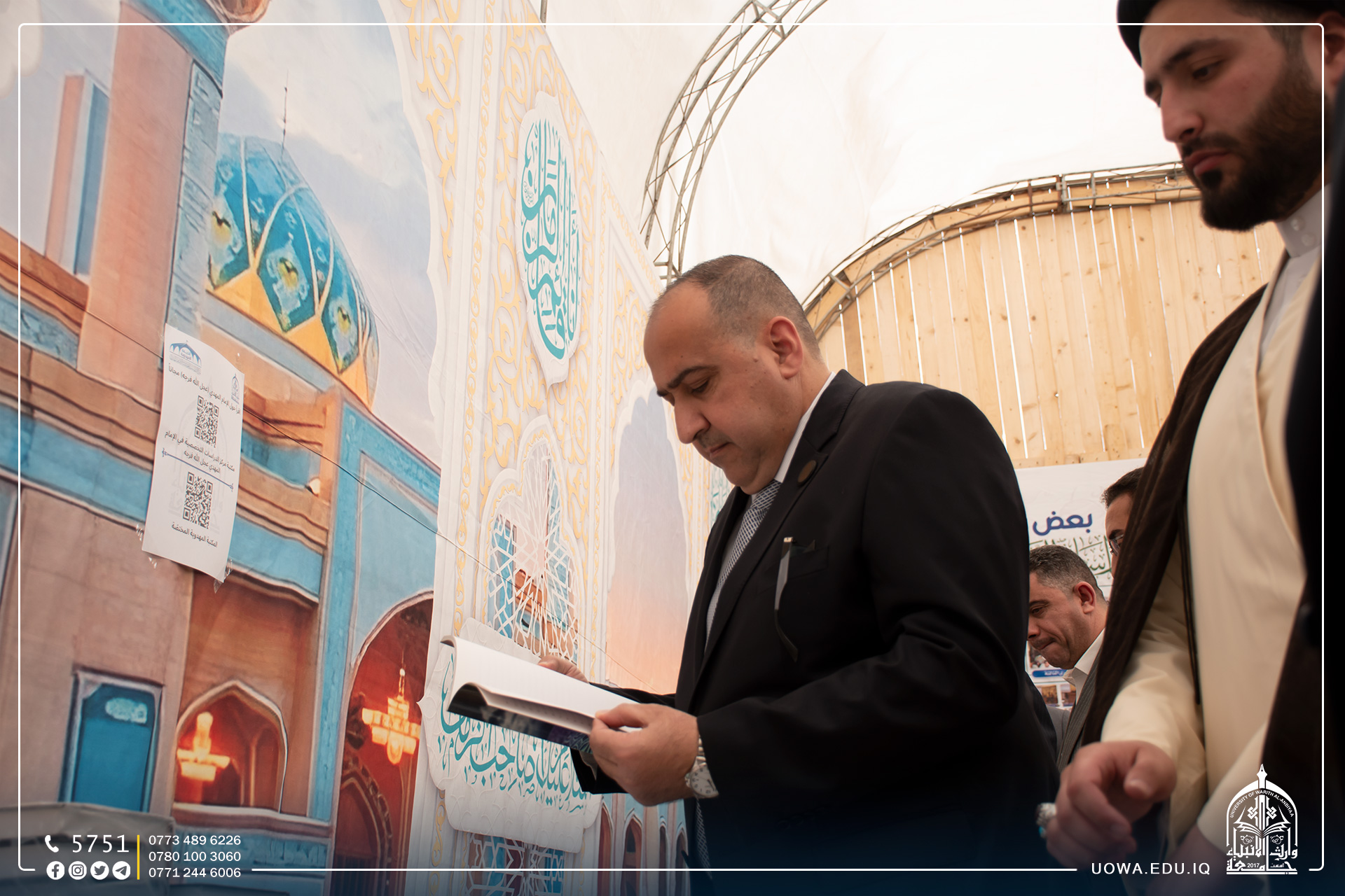The University of Warith Al-Anbiyaa (peace be upon them), in collaboration with the Center for Specialized Studies in Imam Mahdi (peace be upon him), organized the third Mahdiyya Tent Festival. The opening ceremony of this tent was inaugurated by Mr. Ibrahim Al-Hayawi, the university president. The purpose of this tent is to disseminate the correct Mahdi thought and strengthen the spiritual connection with the Imam of the Age, may our souls be sacrificed for him, for the university students.