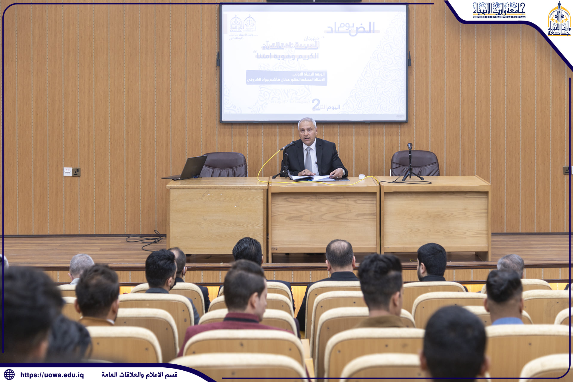 The University of Warith Al-Anbiyaa (Peace Be Upon Him) concluded the activities of its first annual festival held in the Aula Hall, celebrating World Arabic Language Day. The agenda for the second and final day included presentations of four research papers by Dr. Adnan Al-Sharoufi, Dr. Latif Al-Qasab, Dr. Star Al-Ghazi, and Dr. Sami Al-Maamouri. Researchers and participants discussed the significance of language in legal formulation, and the feasibility of studying spoken Arabic dialects academically, and highlighted the Iraqi legislator's stance on language issues and other important linguistic matters. The festival, titled "Arabic: The Language of the Holy Quran and the Identity of Our Nation," produced several recommendations, including establishing an annual tradition and inviting specialists in Arabic and its professors from within Iraq and beyond.