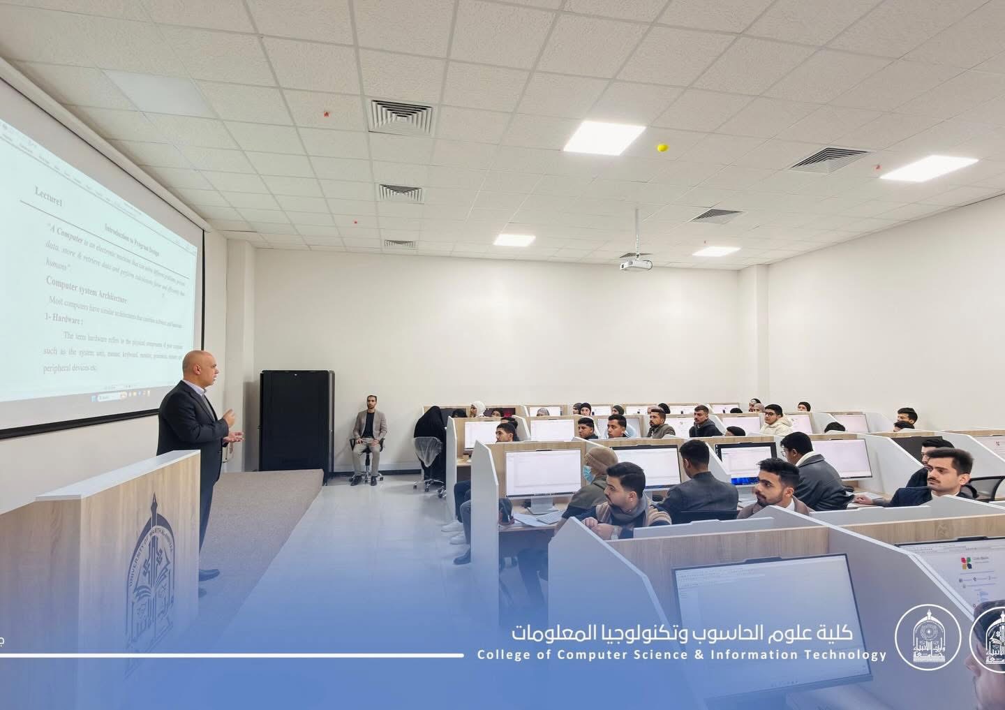 As part of the practical lectures for first-year students at the College of Computer Science and Information Technology – University of Warith Al-Anbiyaa (peace be upon him), students continue to apply the concepts of: