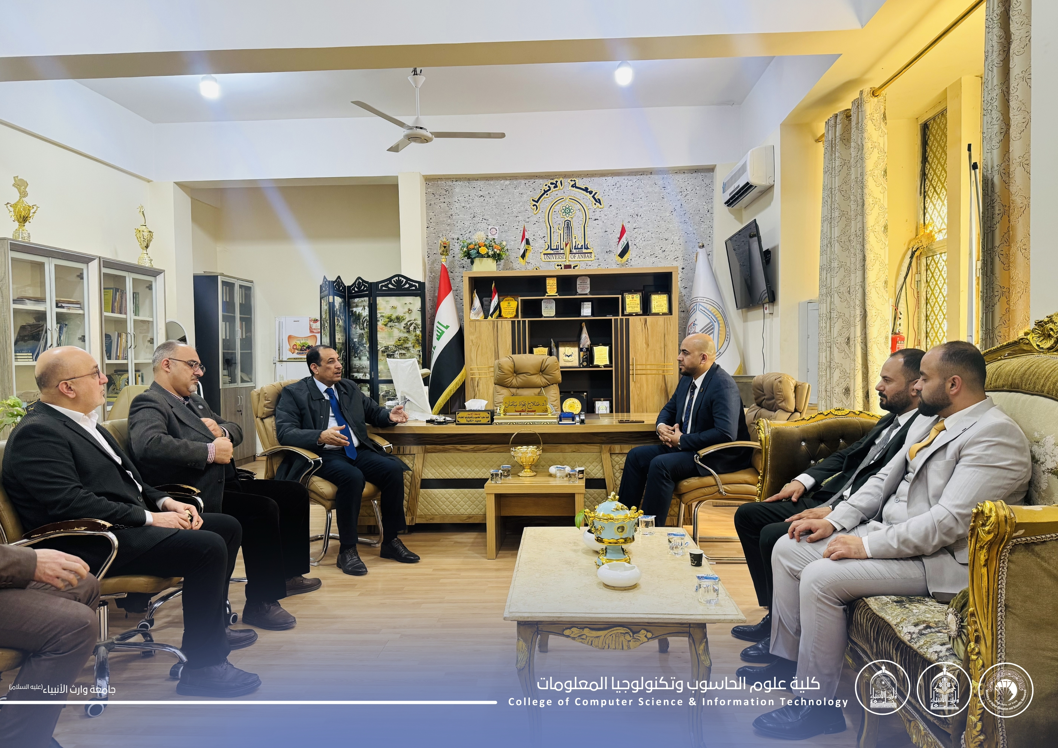 As part of strengthening academic cooperation and the exchange of scientific expertise, Assistant Professor Dr. Haider Mohammed Ali Al-Ghanmi, Dean of the College of Computer Science and Information Technology at the University of Warith Al-Anbiyaa (peace be upon him), signed a scientific twinning agreement with Professor Dr. Salah Awad Salman Al-Issawi, Dean of the College of Computer Science and Information Technology at the University of Anbar. The agreement includes the Department of Artificial Intelligence in our college and the Department of Artificial Intelligence at the University of Anbar.
