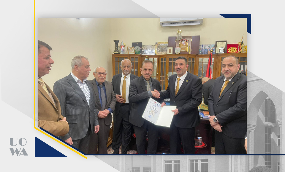 On a wonderful evening, a delegation from the University of Warith Al-Anbia visited the headquarters of the Karbala Council of Notables, consisting of Dr. Ibrahim Al-Hayawi, President of the University, Dr. Nofal Al-Araji, Administrative Assistant, Dr. Waqid Al-Moussawi, Scientific Assistant, Dr. Ali Sahib Al-Sharifi, Dean of the College of Law, Dr. Ali Abdul-Saadoun Al-Ghazi, Dean of the College of Medicine, Dr. Laith Muhammad Abbas, Assistant Dean, Dr. Ali Mansour Jassim, Assistant Dean, Dr. Riyadh Abdul-Rasoul Haniwa, Head of the Department of Diseases, Dr. Hussein Hadi Al-Awadi, Dean of the College of Engineering, Dr. Murtadha Ghanem Adai, Dean of the College of Nursing, and other professors. The delegation was received with great warmth, as the meeting included talk about the qualitative leaps achieved in the recent medical and legal educational progress of the university according to the standards approved by the Ministry of Higher Education and Scientific Research. The creative and distinguished were also honored with a document of thanks and appreciation, and they were given the Shield of Creativity and Excellence for their wonderful scientific educational performance, wishing continued success and progress for all colleges of the university. May God grant success... Saturday 8/2/2025