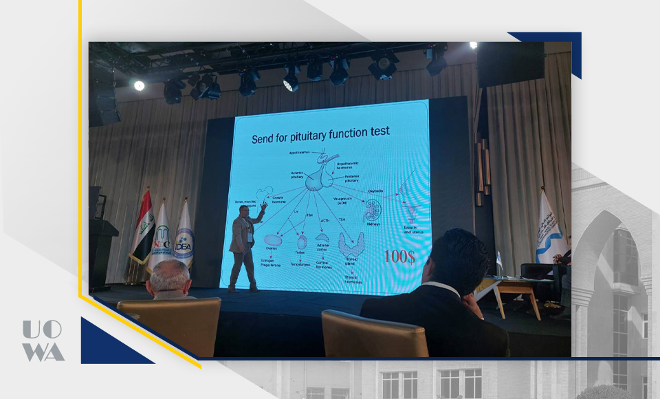 The College of Medicine at Warith Al-Anbiya University congratulates Dr. Riyad Haniwa, lecturer in the Department of Pathochemistry, for his active participation in the first conference of the Iraqi Society of Endocrinology and Diabetes, held in Baghdad.